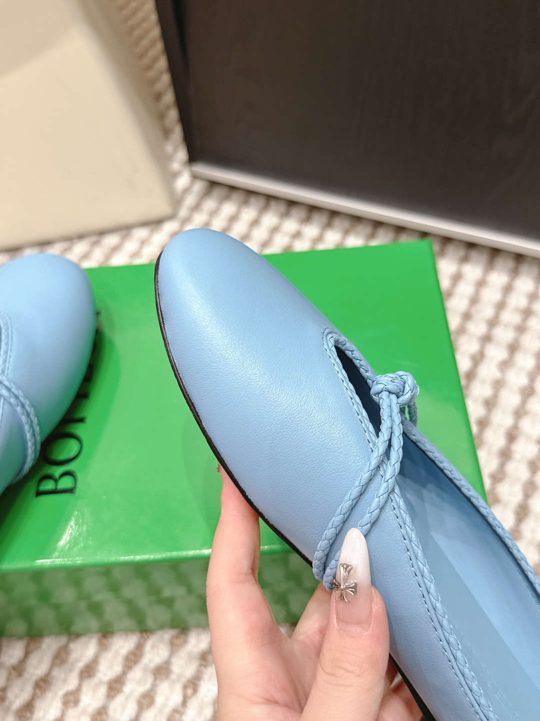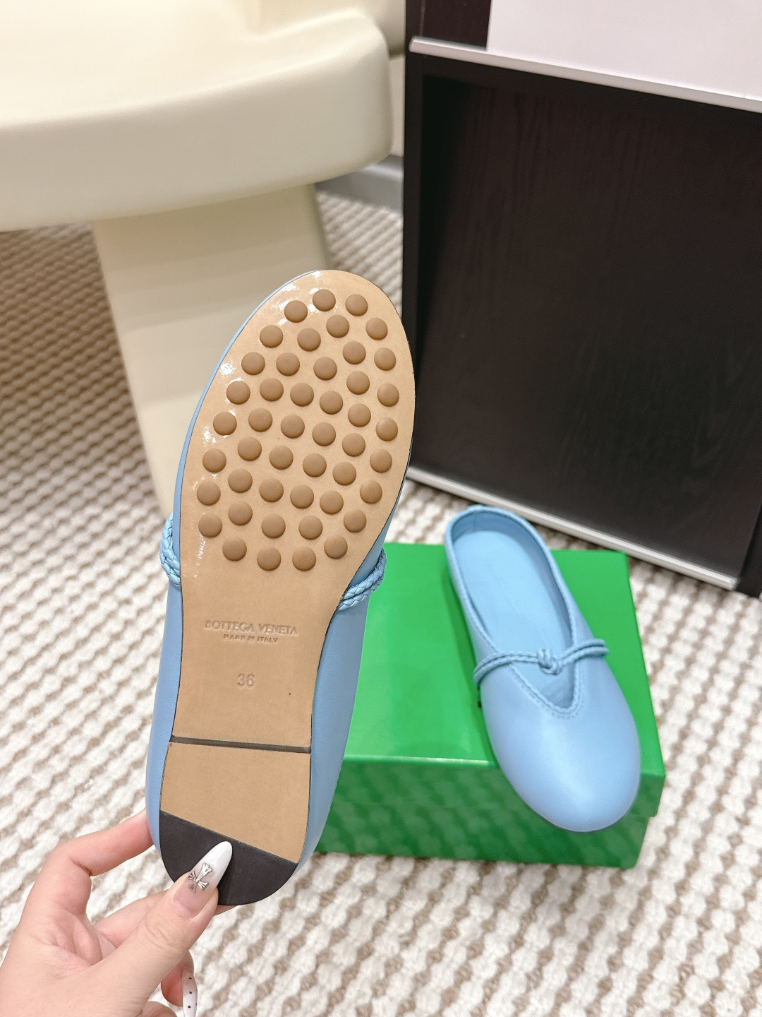 - Frequently Asked Questions About Bottega Veneta Sky Blue Leather Ballerina Flats