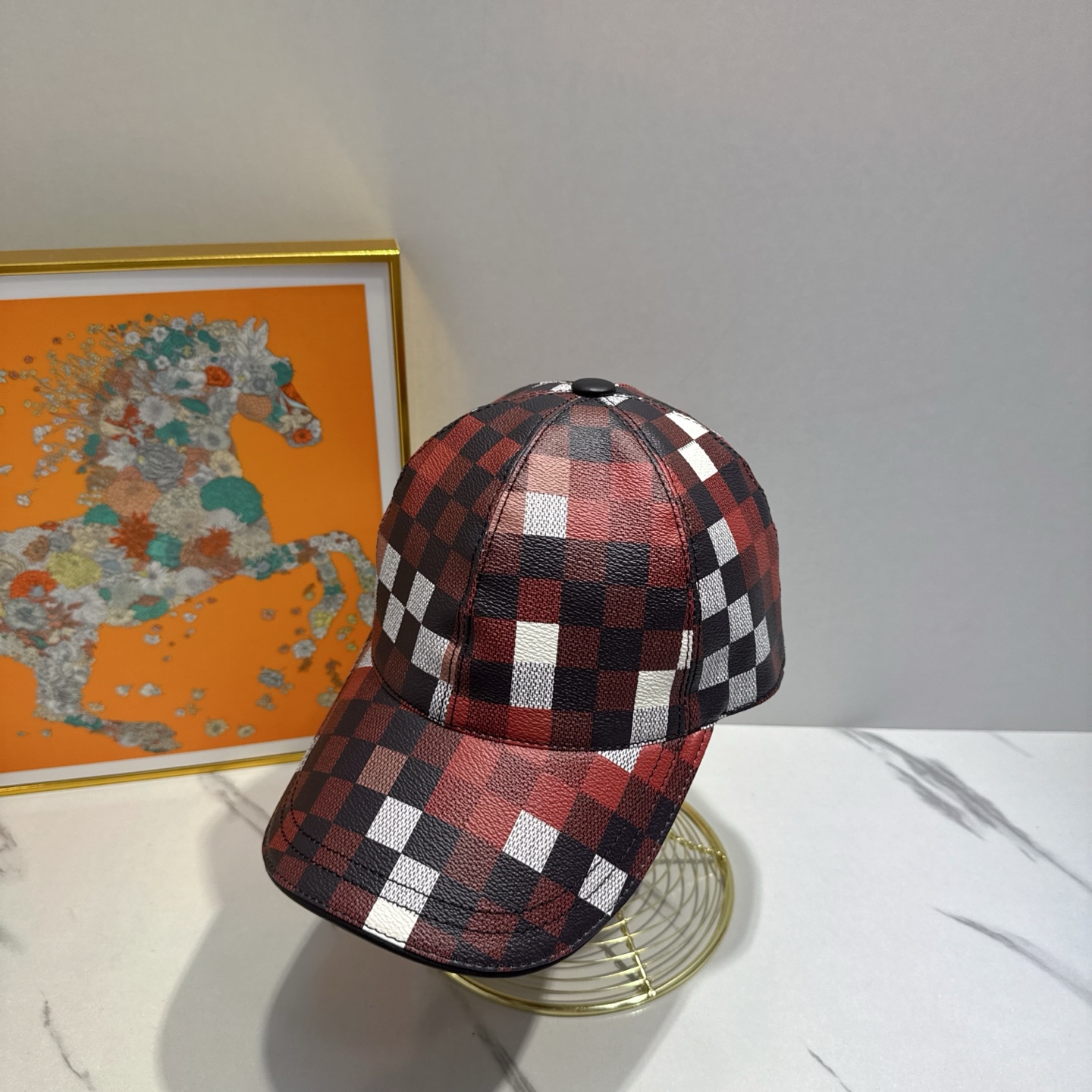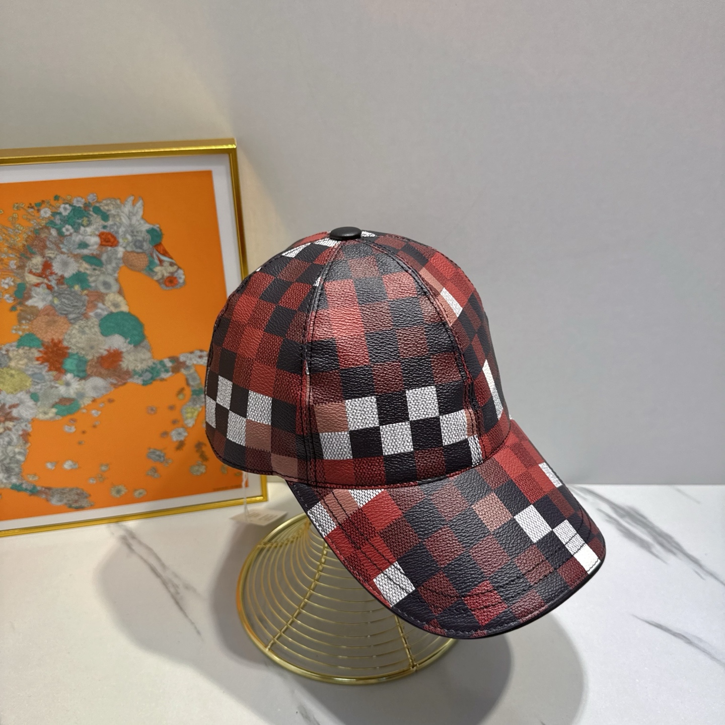 Why Choose the Hermes Red Checkered Leather Cap?