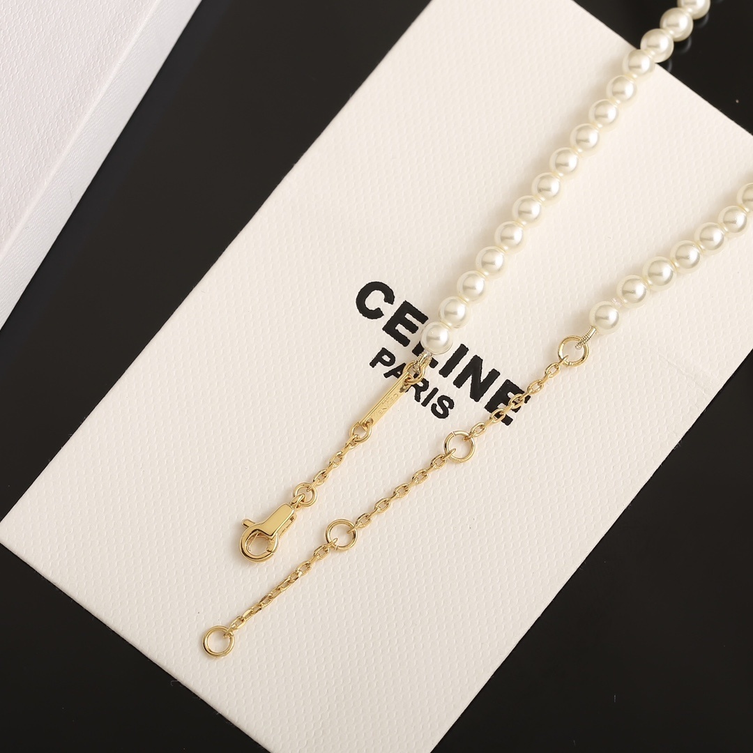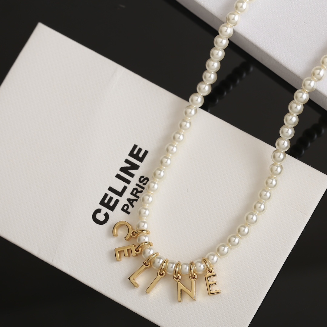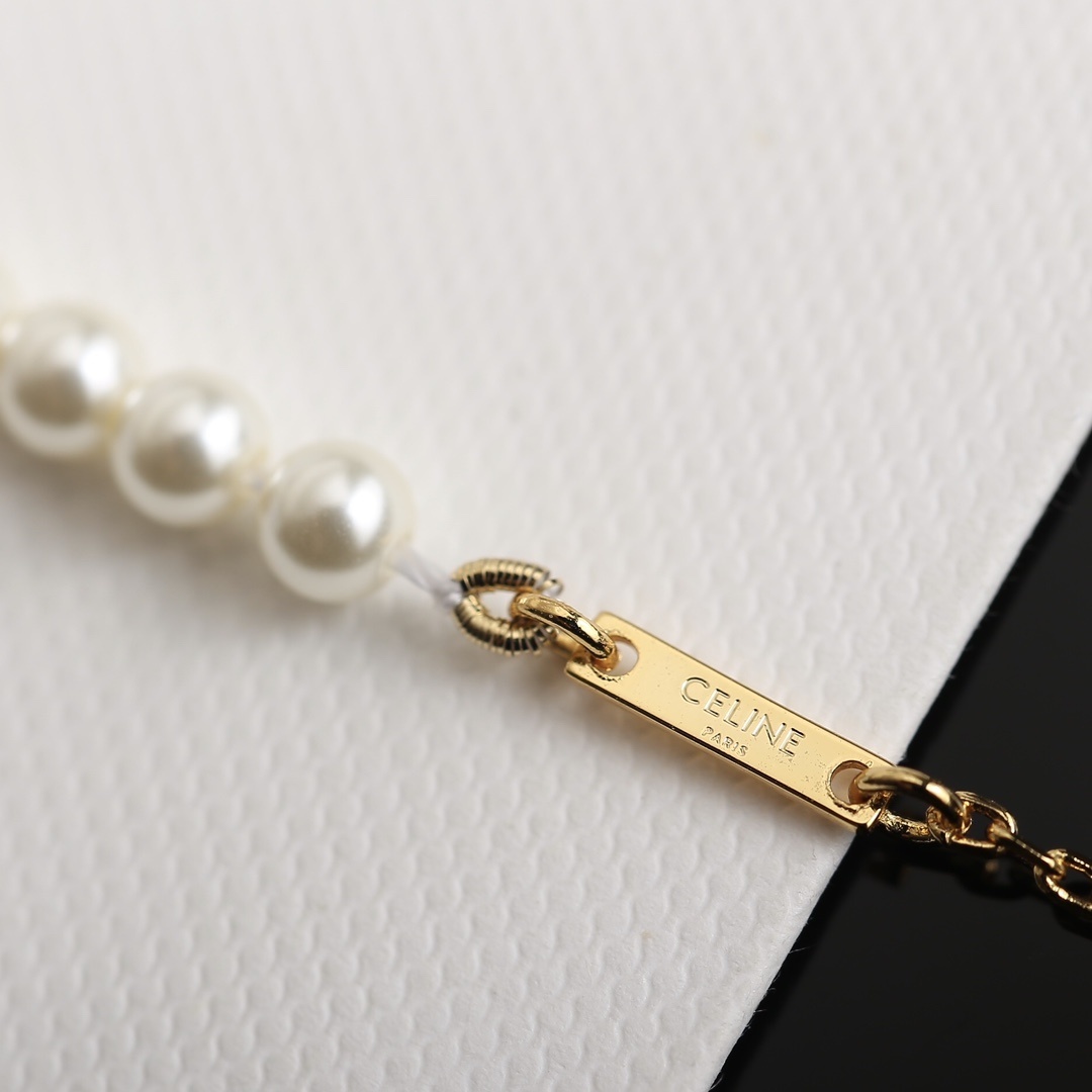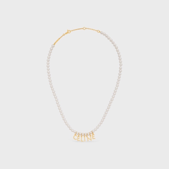 - Introducing the Celine Pearl & Gold Letter Necklace