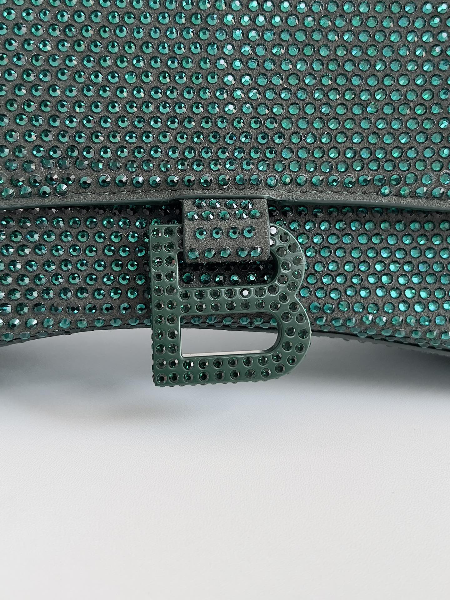Detailed Features of the Balenciaga Green Rhinestone Hourglass Bag