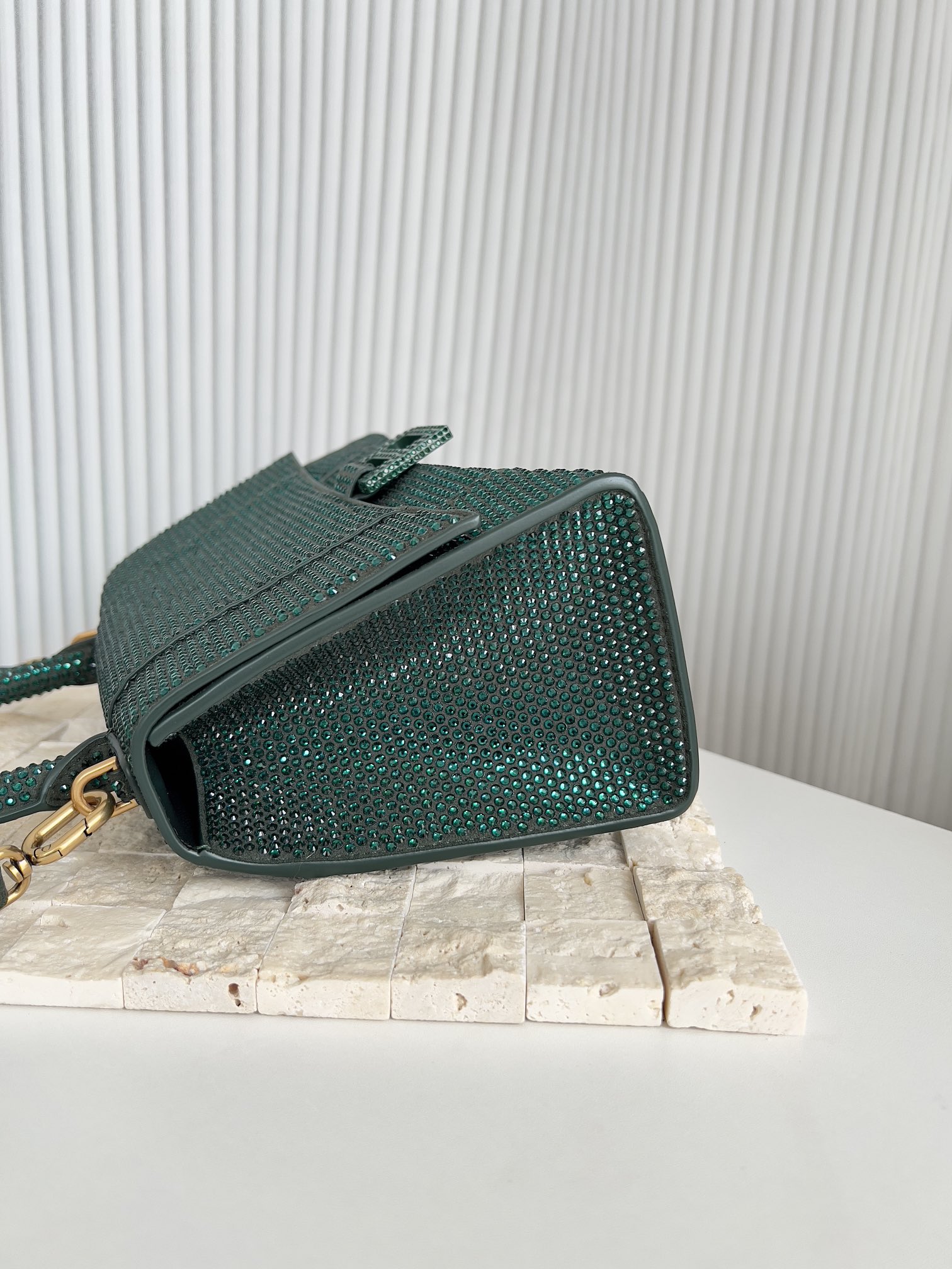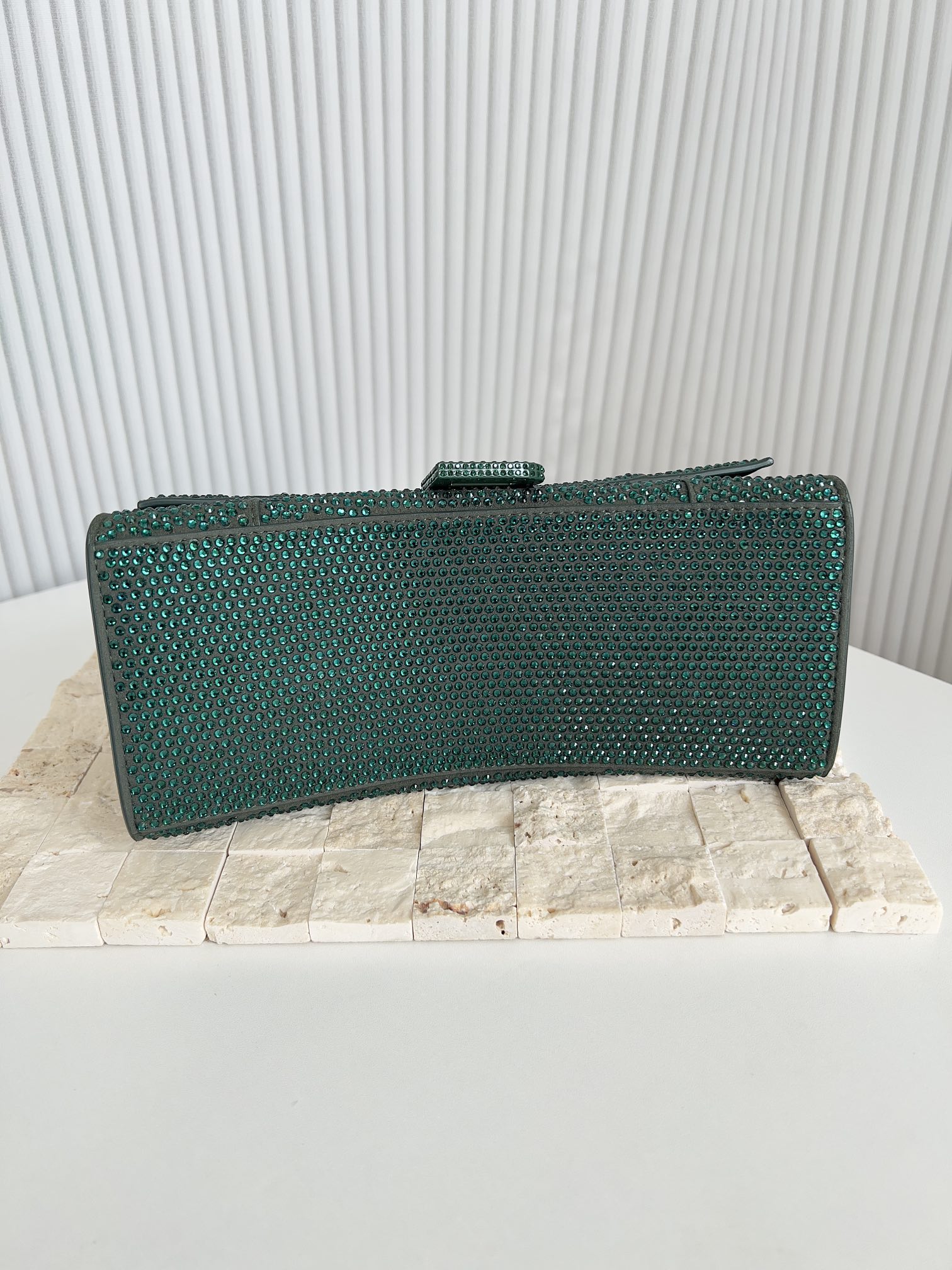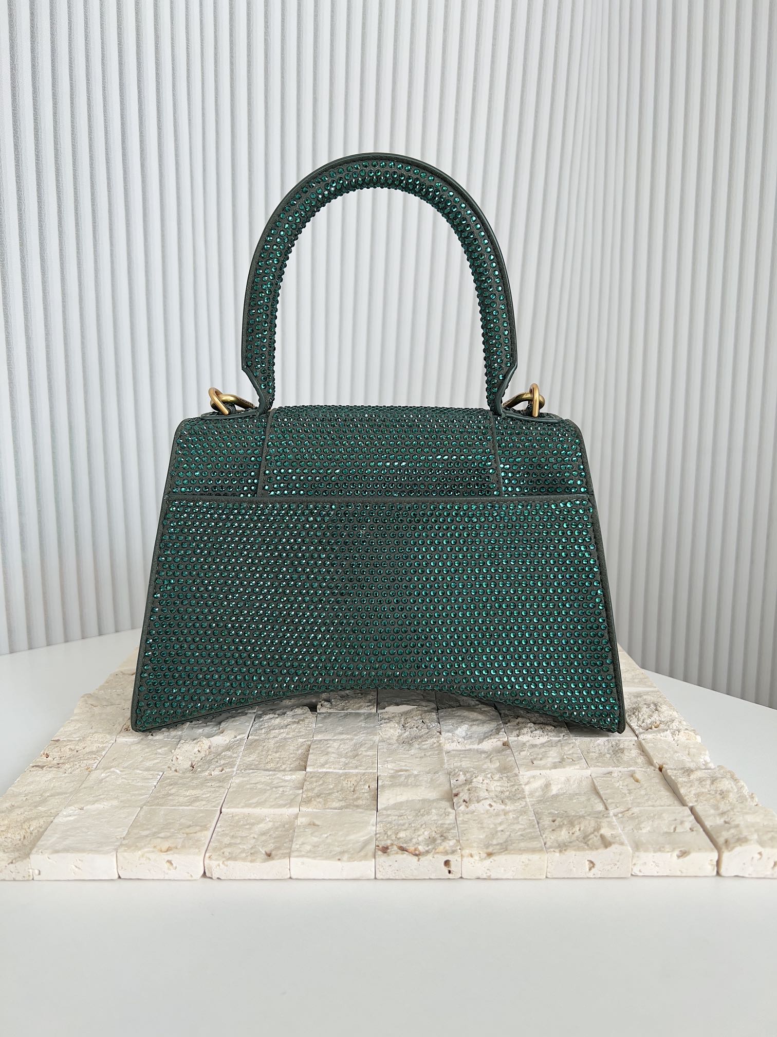 limited Balenciaga Green Rhinestone Hourglass Bag Features