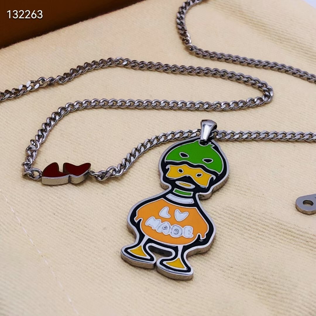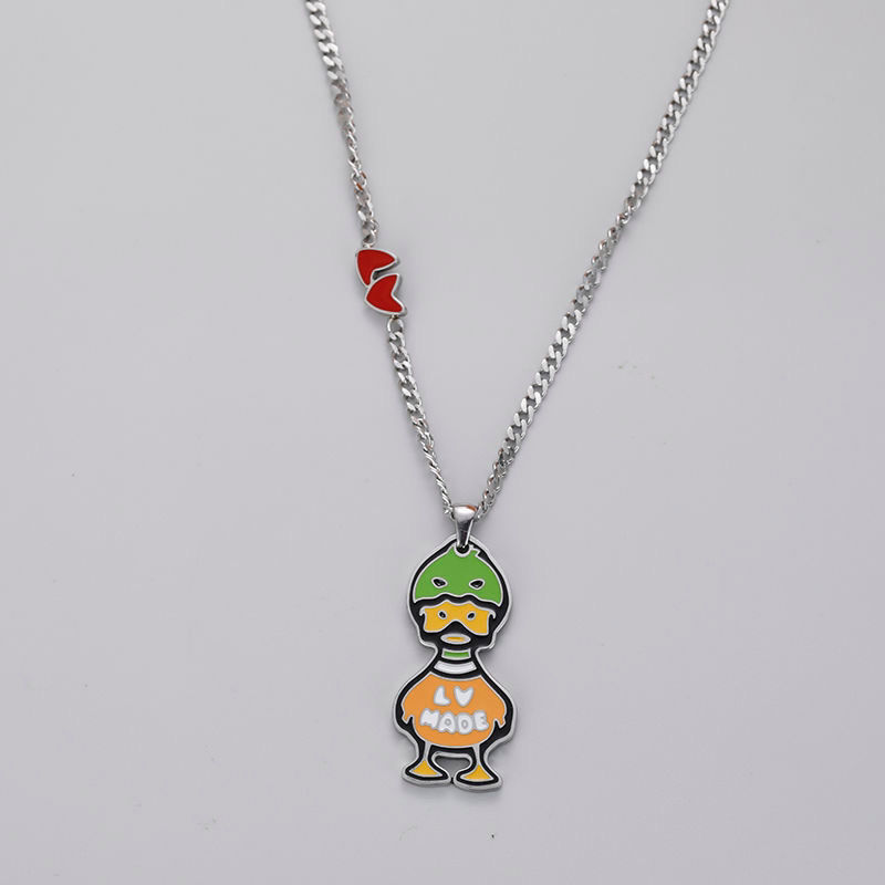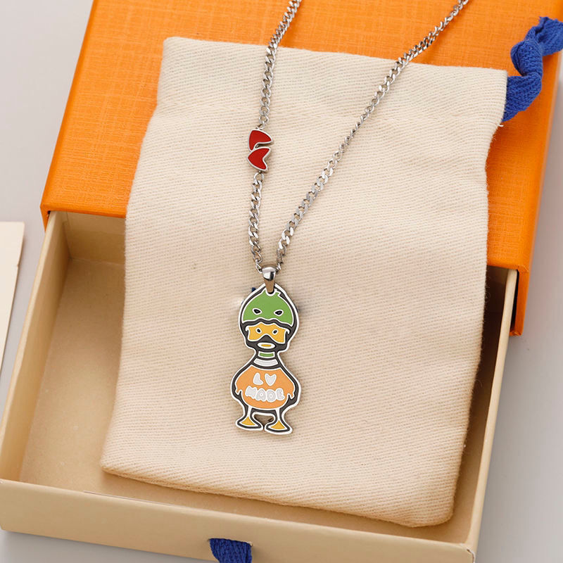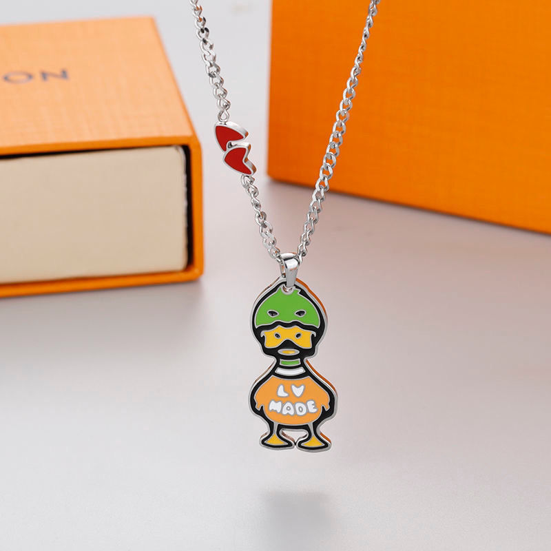 The playful duck pendant design sets this necklace apart from other jewelry pieces. Its unique charm and vibrant colors make it a standout accessory. The LV Silver Duck Pendant Necklace is perfect for those who appreciate distinctive and artistic designs. It is a true reflection of individuality and personal style.