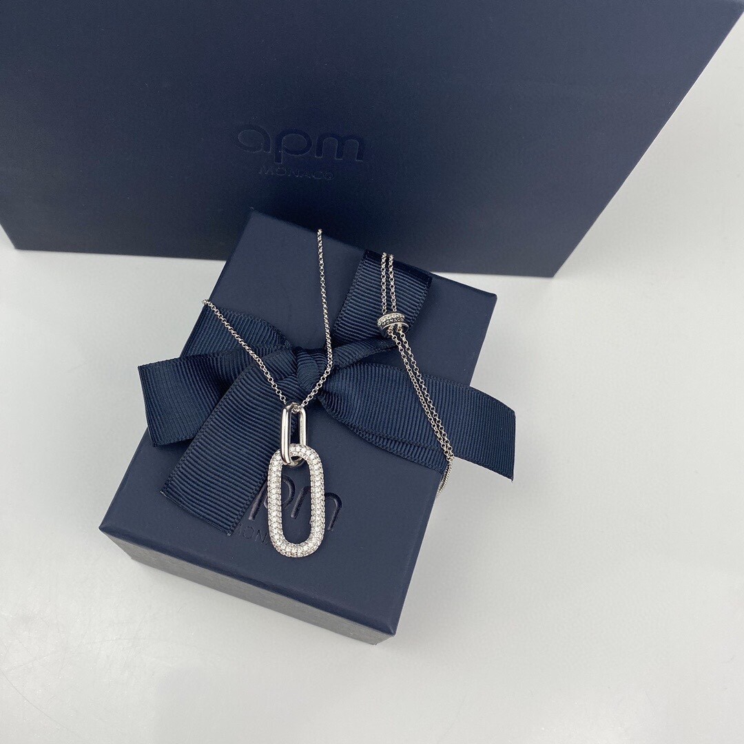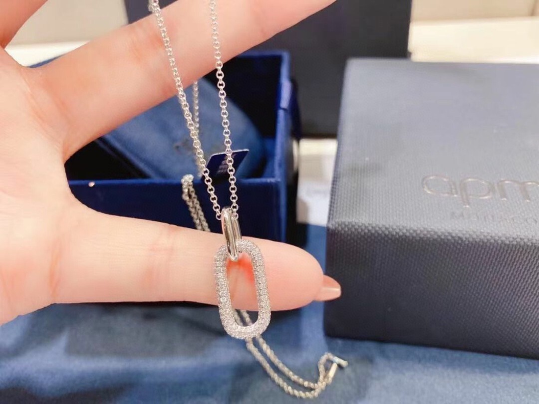 A: The necklace is crafted from high-quality sterling silver and adorned with pave crystals.