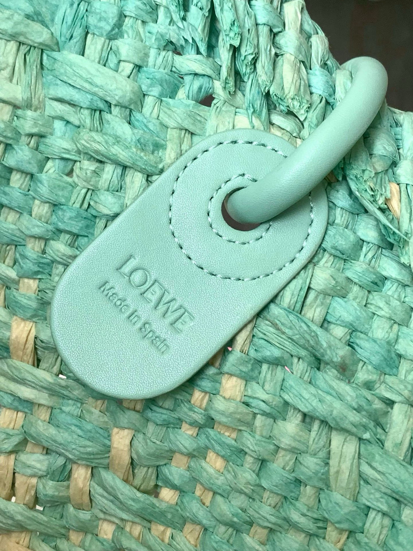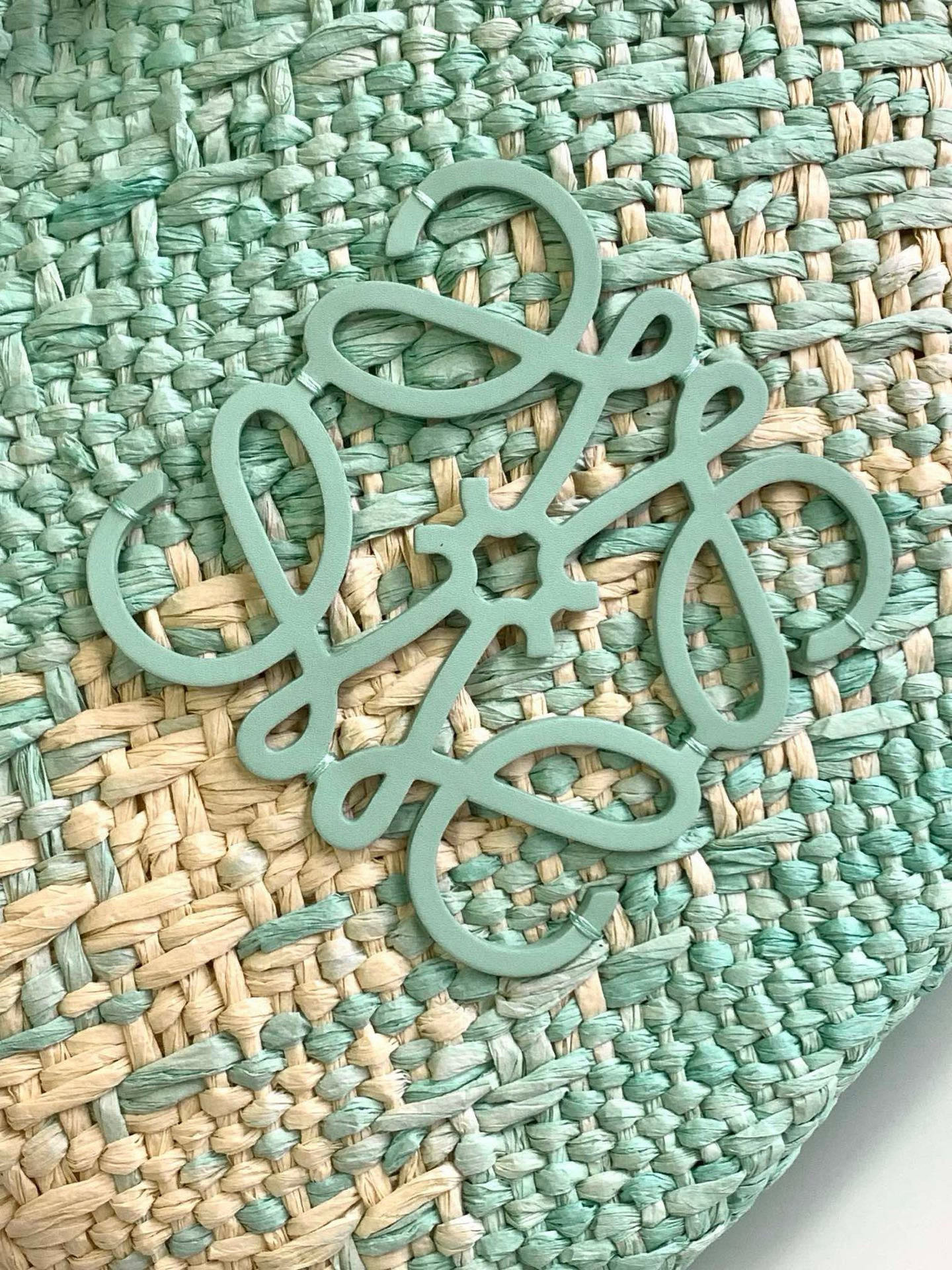 Loewe Aqua Woven Raffia Tote - Anagram Detail