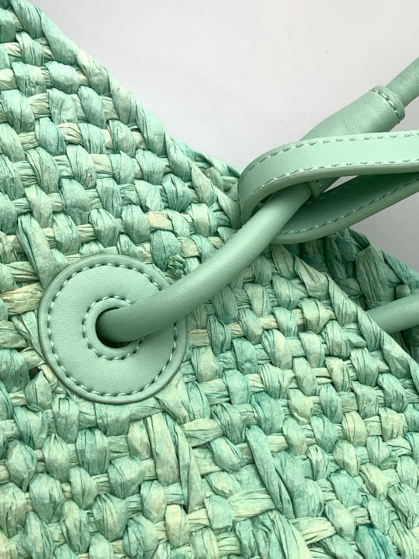 A: While the tote is particularly well-suited for spring and summer, its versatile design makes it a stylish choice for year-round use. The refreshing aqua color can brighten up any outfit, while the durable raffia material ensures longevity.