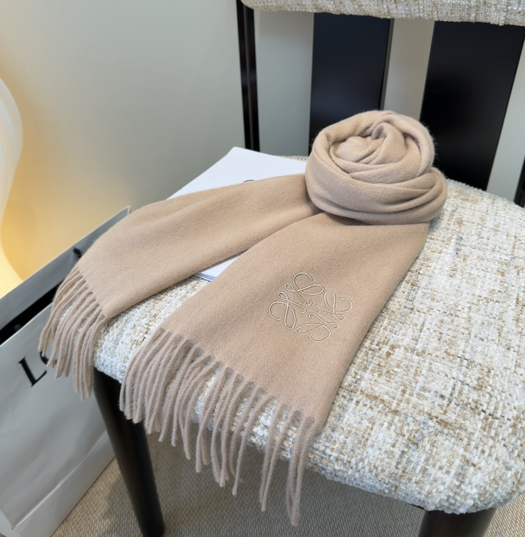 Loewe Beige Wool Scarf embroidered - Wrap yourself in the luxurious comfort of the Loewe Beige Wool Scarf. This exquisite scarf is crafted from the finest wool, offering unparalleled warmth and softness. Featuring an elegantly embroidered Loewe logo, this scarf adds a touch of sophistication to any outfit. Whether you're braving the winter chill or simply looking to elevate your style, the Loewe Beige Wool Scarf is the perfect accessory. It’s a timeless piece that combines practicality with high fashion, making it an essential addition to your wardrobe. The neutral beige color ensures versatility, allowing it to complement a wide range of ensembles. Experience the ultimate blend of comfort and style with this exceptional scarf.