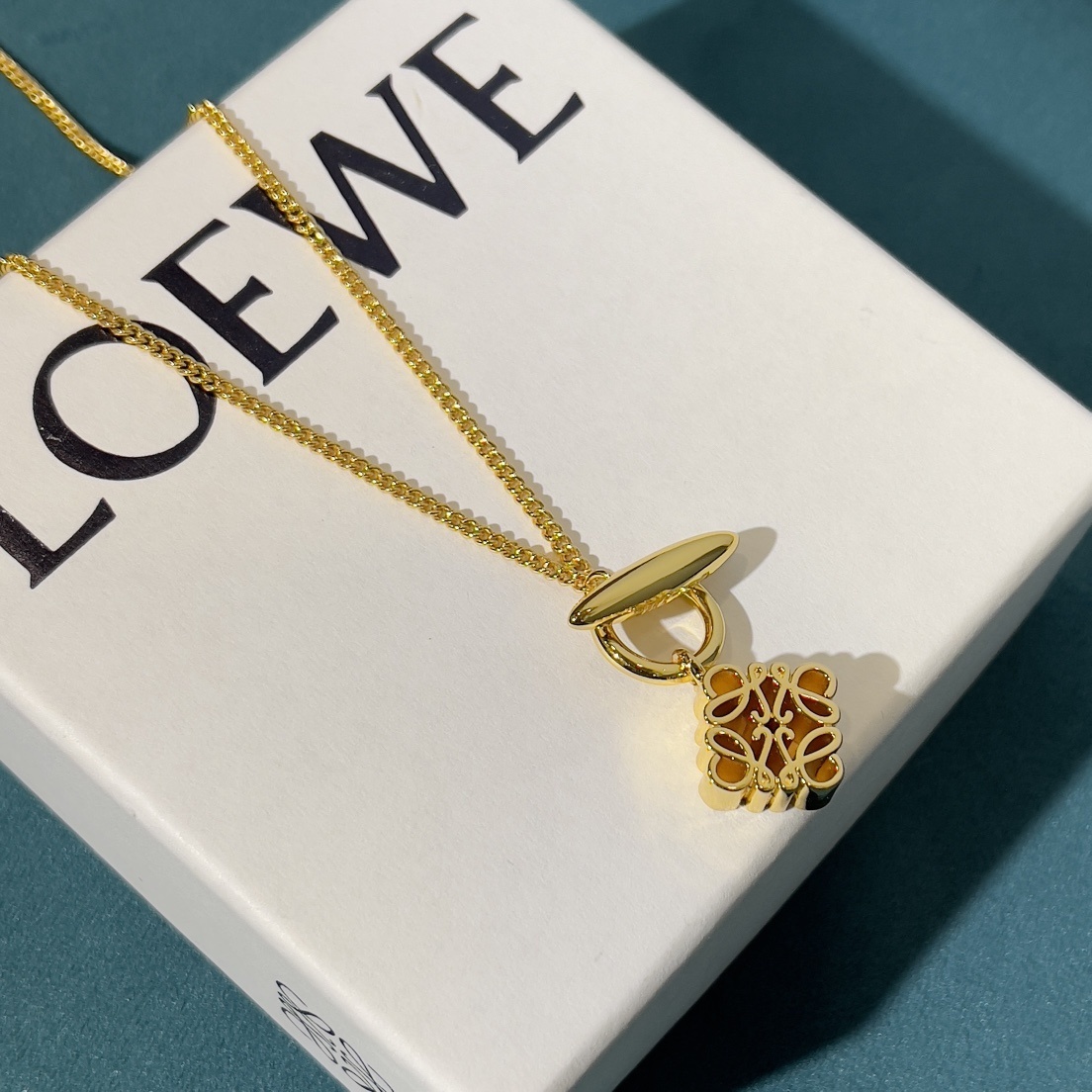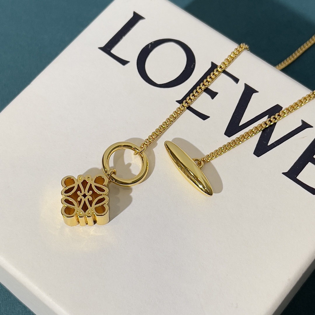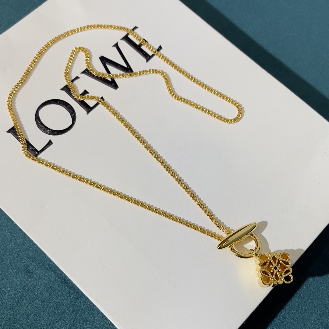 The Loewe Gold Clover Pendant Necklace is a stunning piece of jewelry that effortlessly combines elegance and sophistication. Featuring a delicate gold chain and a charming clover-shaped pendant, this necklace is perfect for adding a touch of luxury to any outfit. The intricate detailing and high-quality craftsmanship make it a standout accessory that will be cherished for years to come. The **Loewe Gold Clover Pendant Necklace** is more than just an accessory; it's a statement of refined taste and timeless style. This necklace is designed to be versatile, complementing both casual and formal ensembles with its understated yet captivating presence. Whether you're attending a social gathering or simply want to elevate your everyday look, this pendant necklace is the perfect choice.