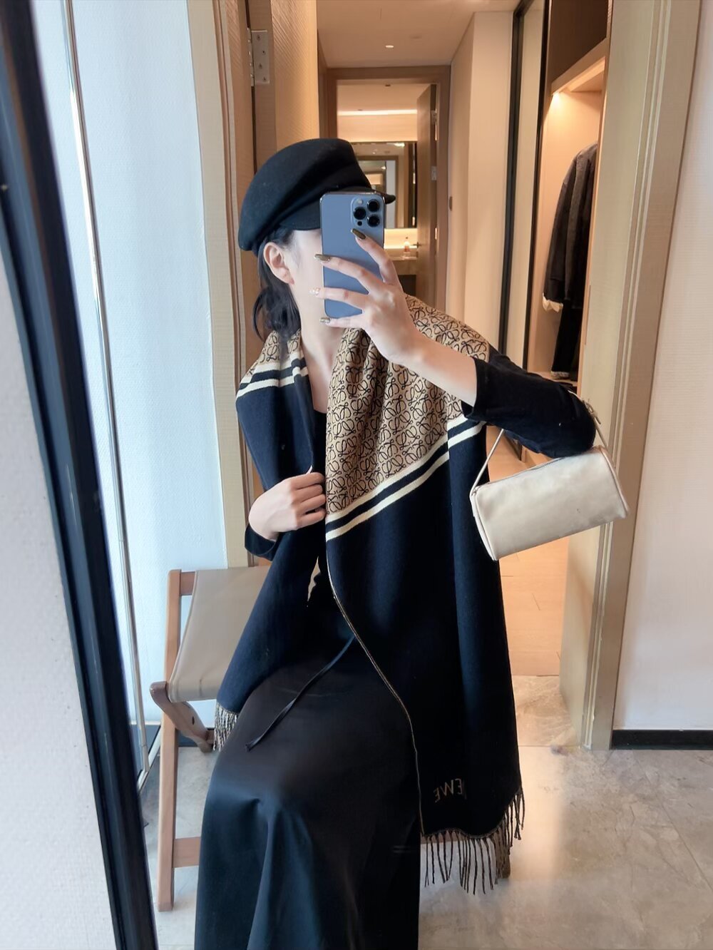 Loewe Anagram Black & Ivory Wool Scarf – Cozy Chic