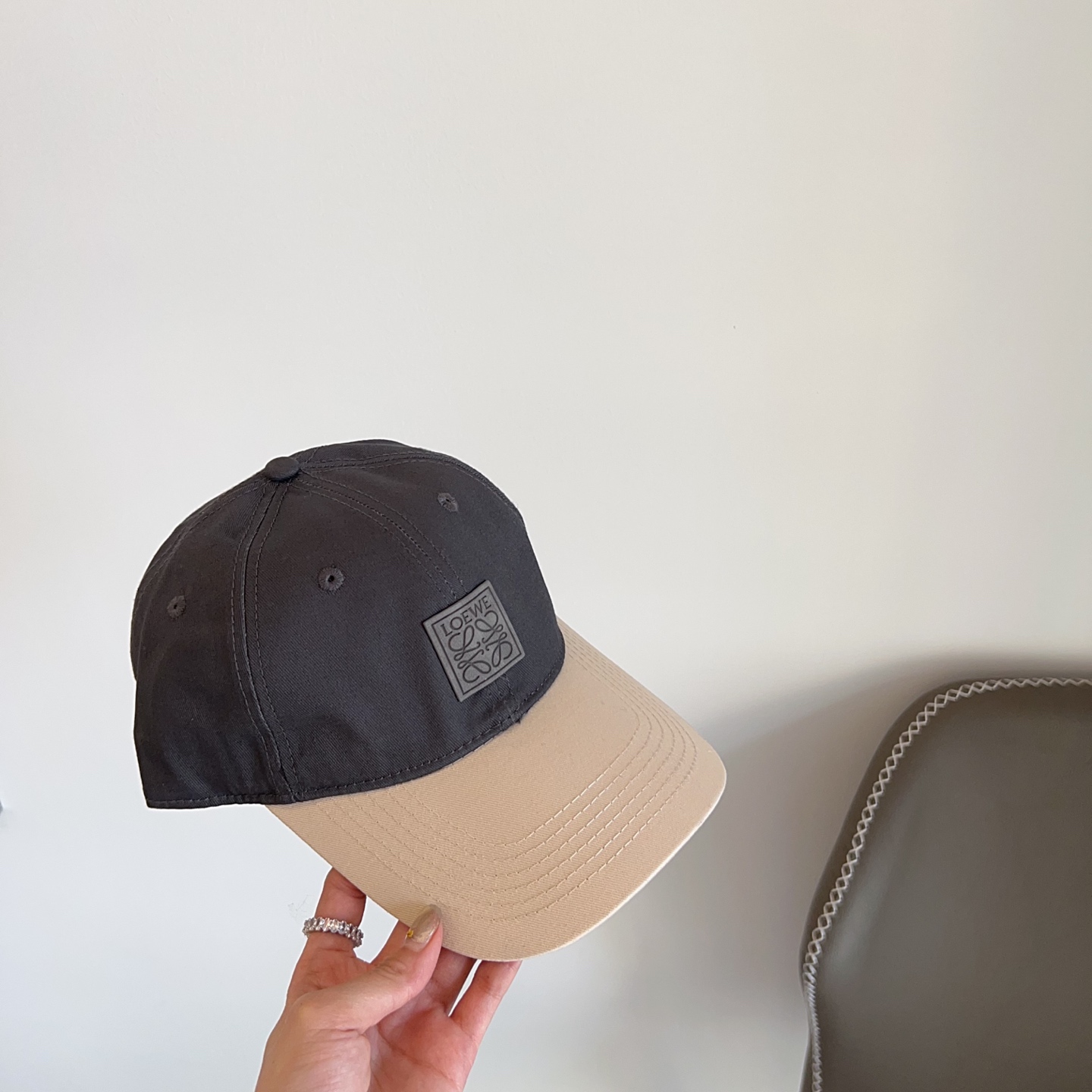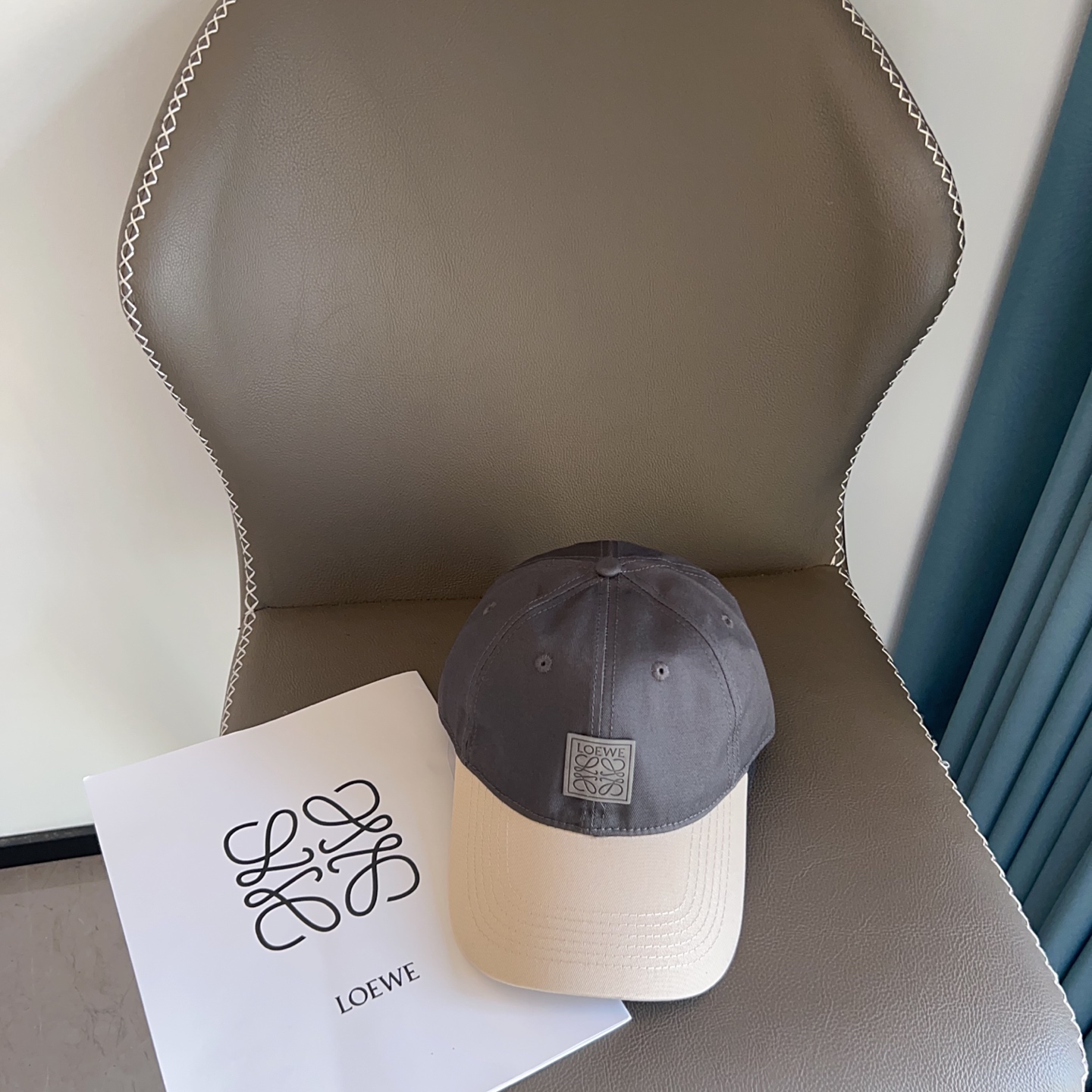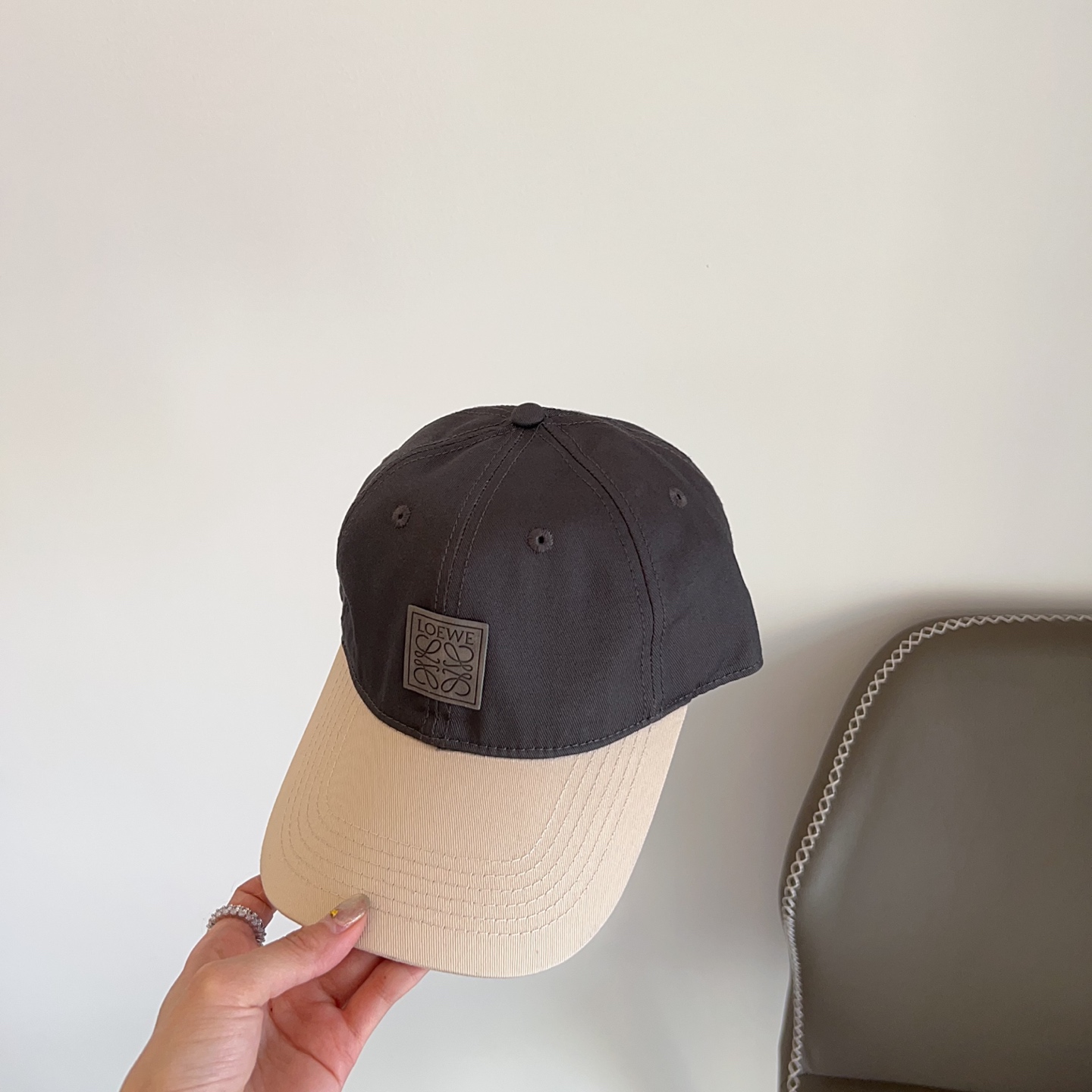 Loewe Two-Tone Baseball Cap - Elevate your headwear collection with the stylish and sophisticated Loewe Two-Tone Canvas Baseball Cap. This unique cap combines a classic design with modern aesthetics, making it a versatile accessory for any wardrobe. The two-tone color scheme, featuring a sleek grey crown and a contrasting beige brim, adds a touch of understated elegance. Crafted from high-quality canvas, this cap is not only durable but also comfortable to wear. The iconic Loewe logo subtly embossed on the front adds a touch of luxury and brand recognition, making it a must-have for fashion enthusiasts.