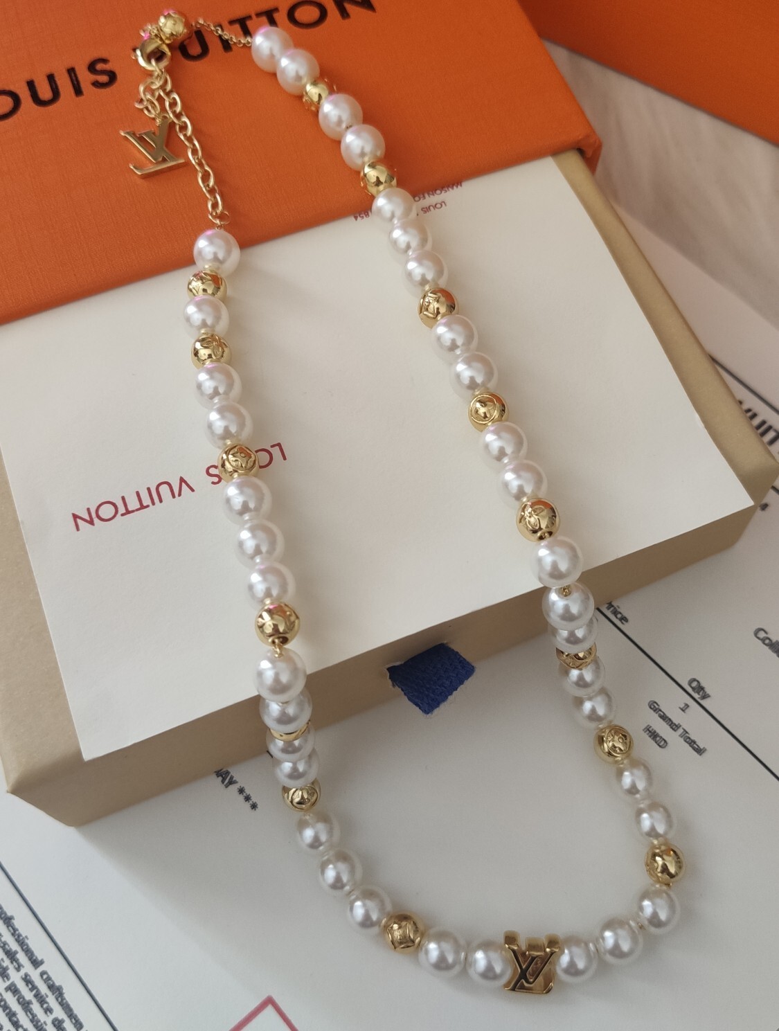 - Introducing the Louis Vuitton Gold Pearl Logo Necklace