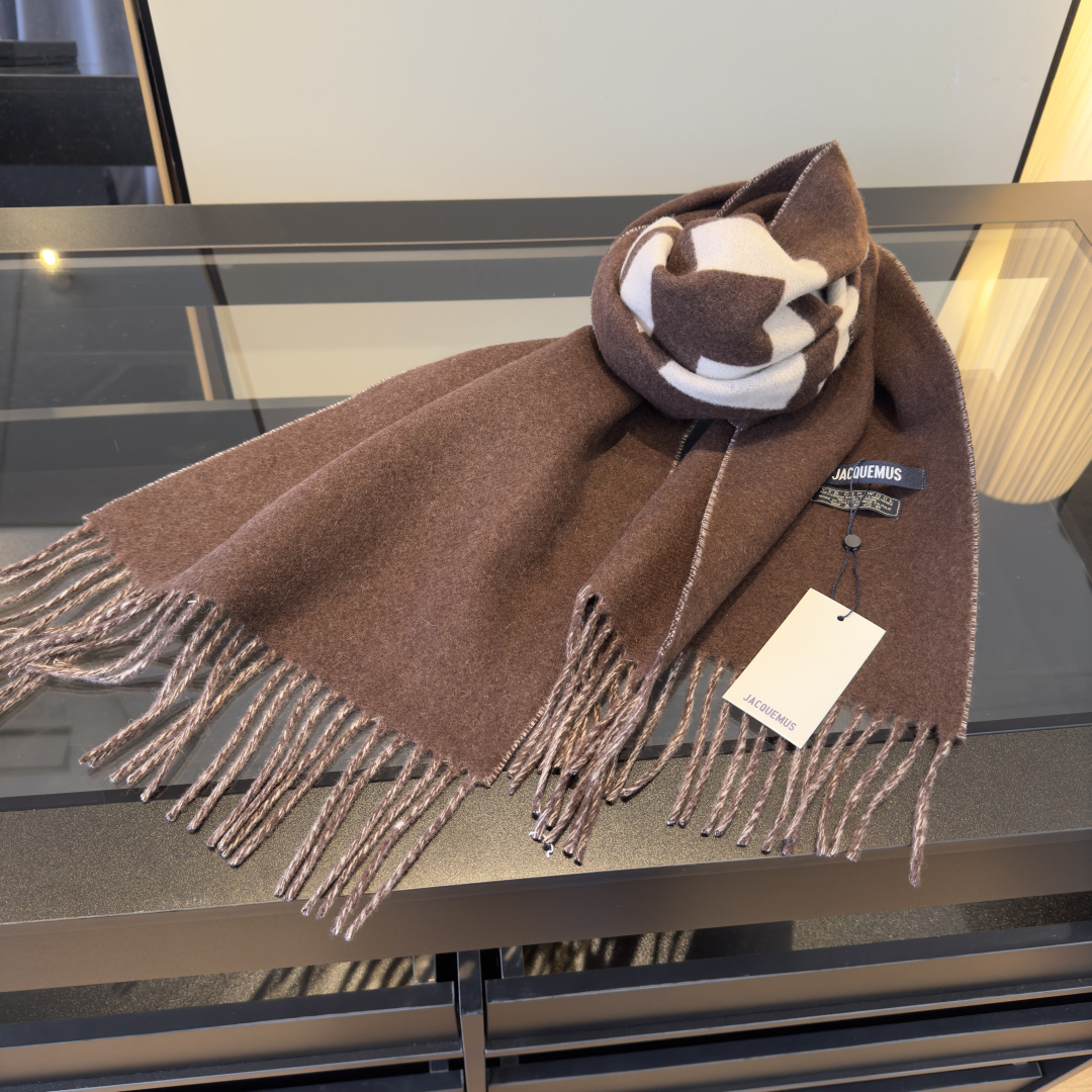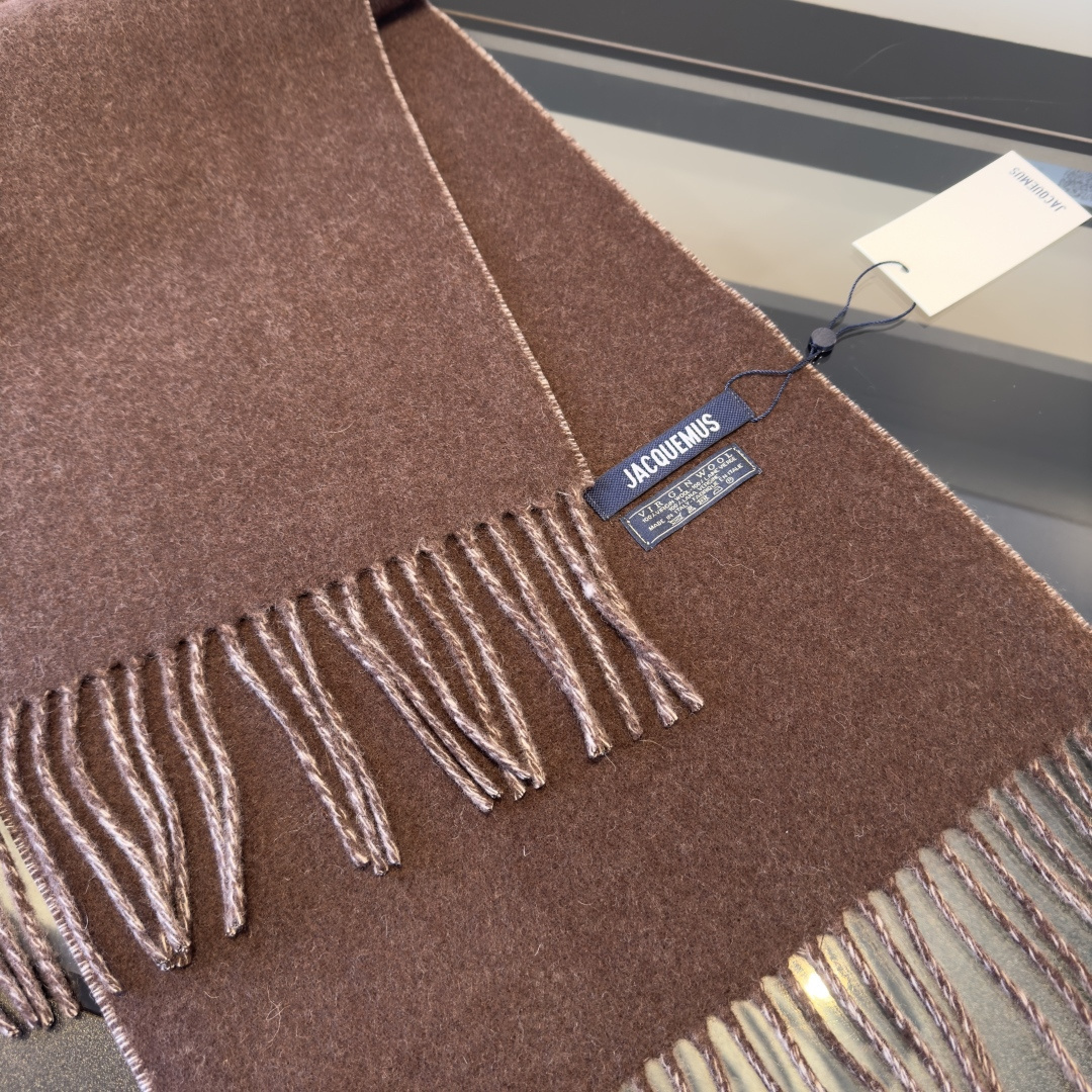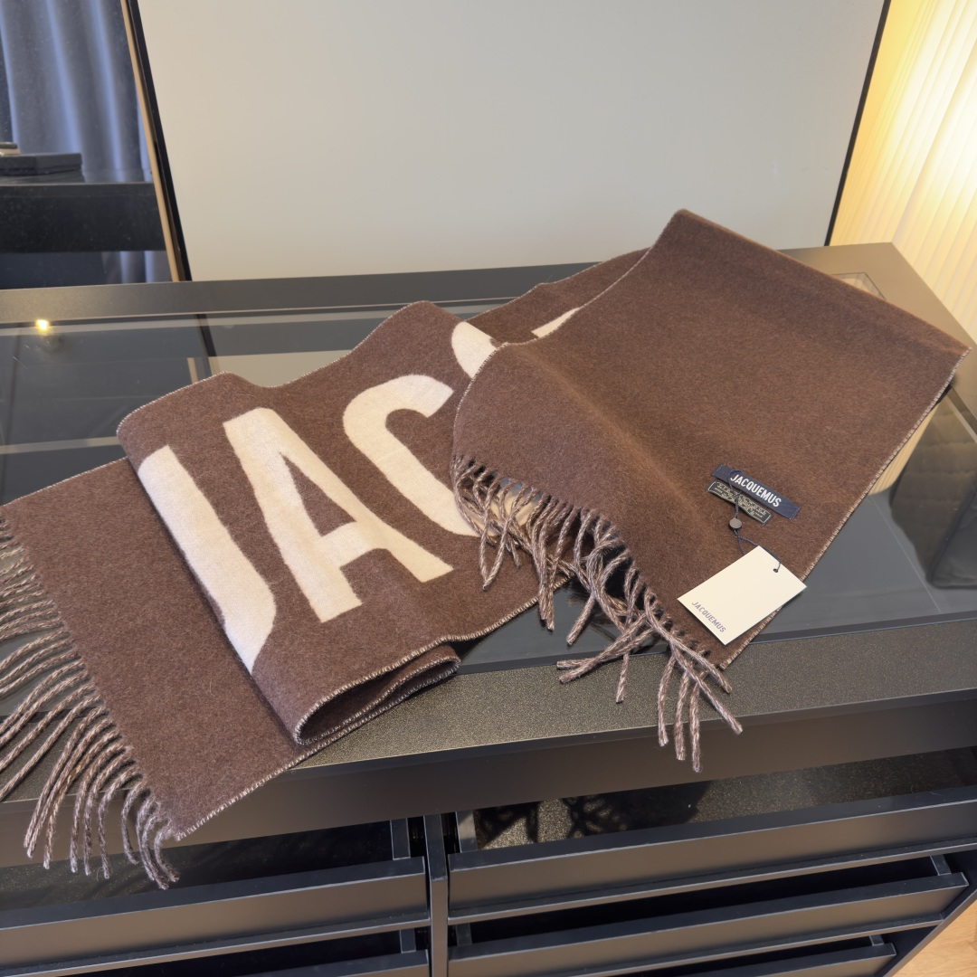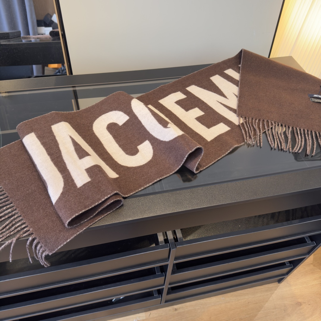 The brown color of the scarf is versatile and timeless, making it easy to pair with a variety of outfits. It complements both casual and formal attire, adding a touch of sophistication to any look. The Jacquemus logo adds a contemporary edge, making it a statement piece that will turn heads.