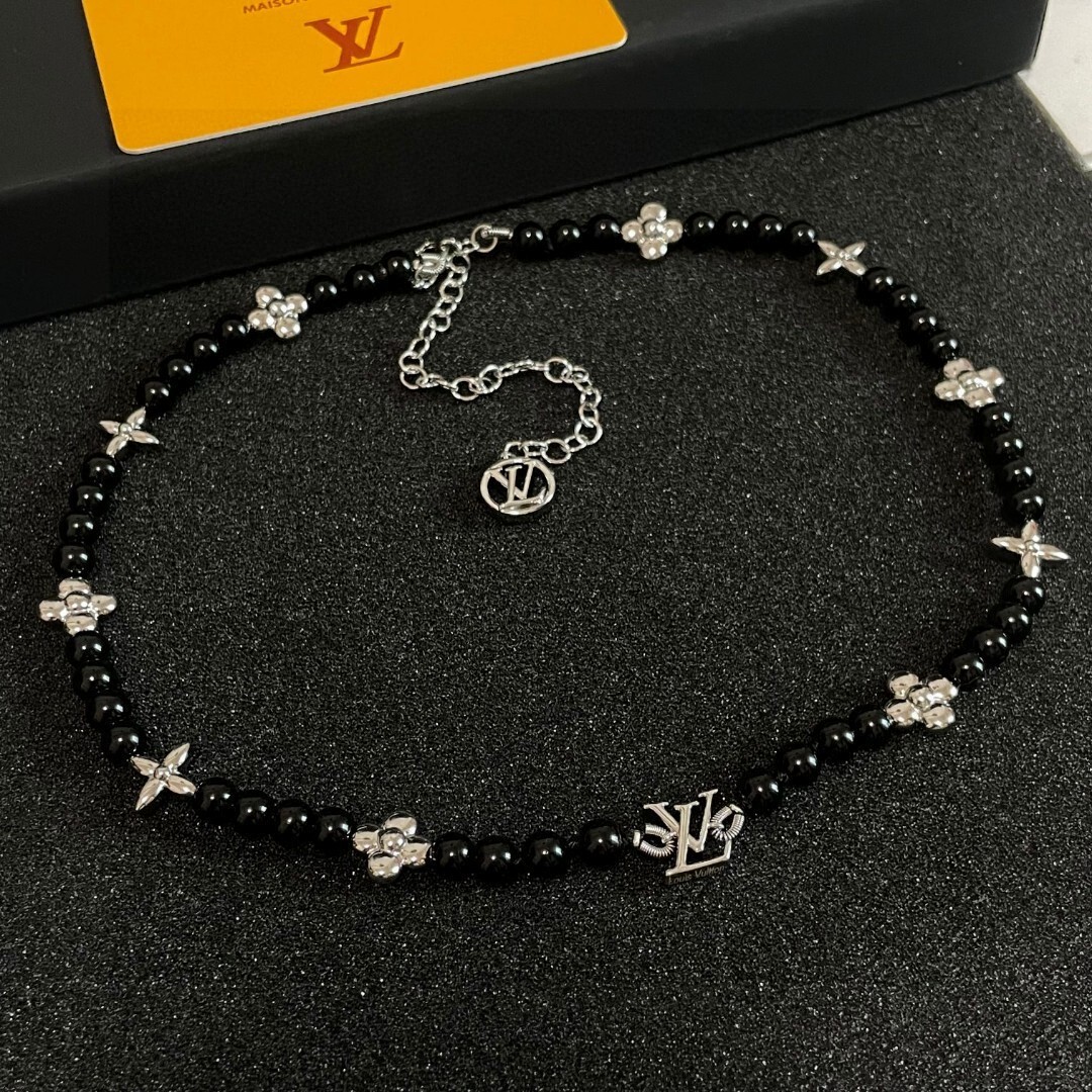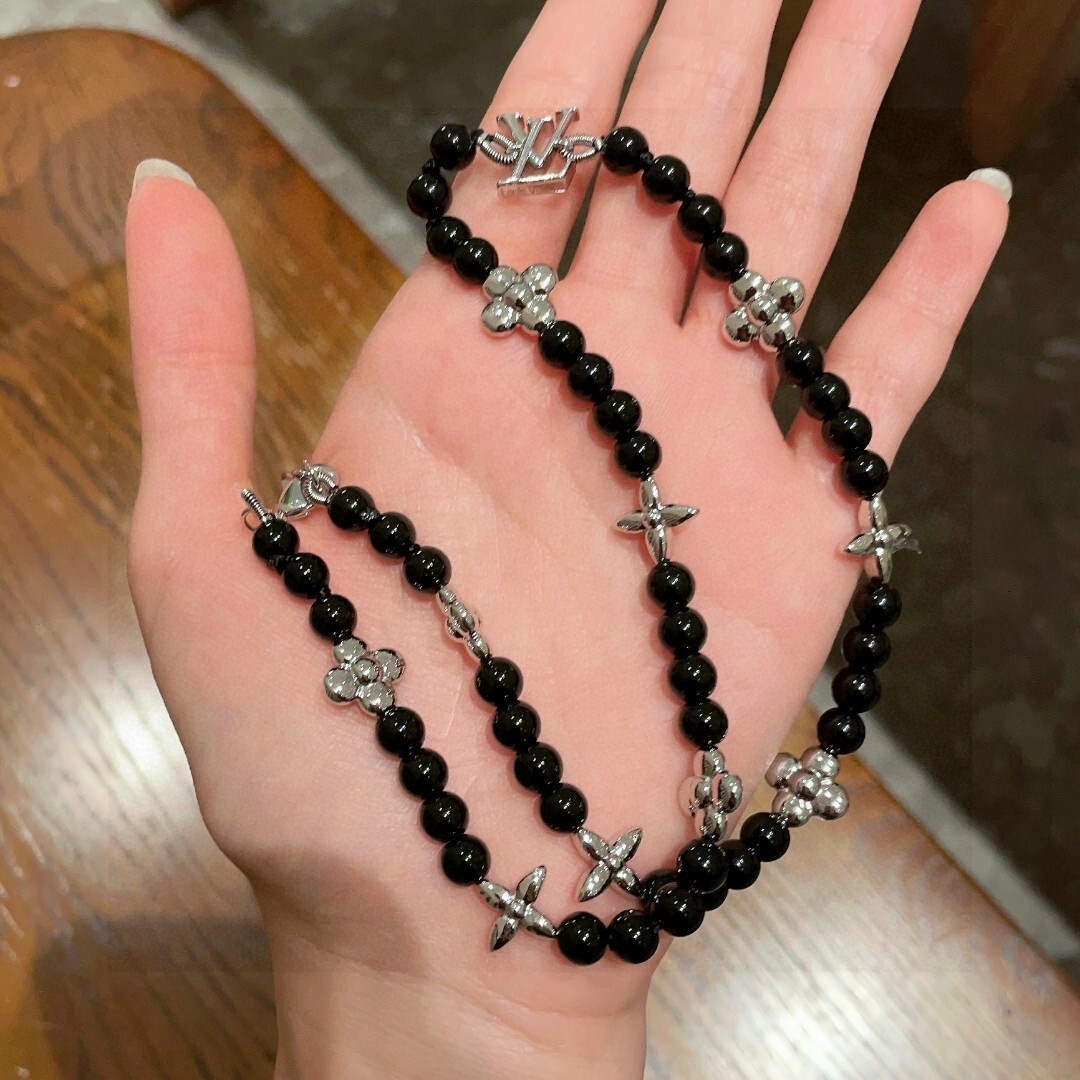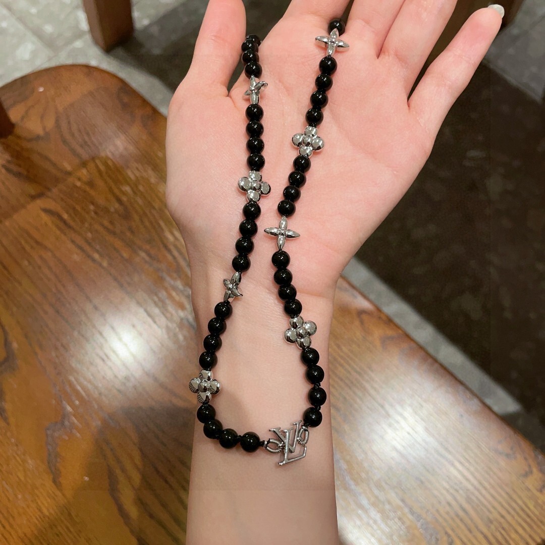 - Introducing the Louis Vuitton Black Beaded Silver Charm Necklace
