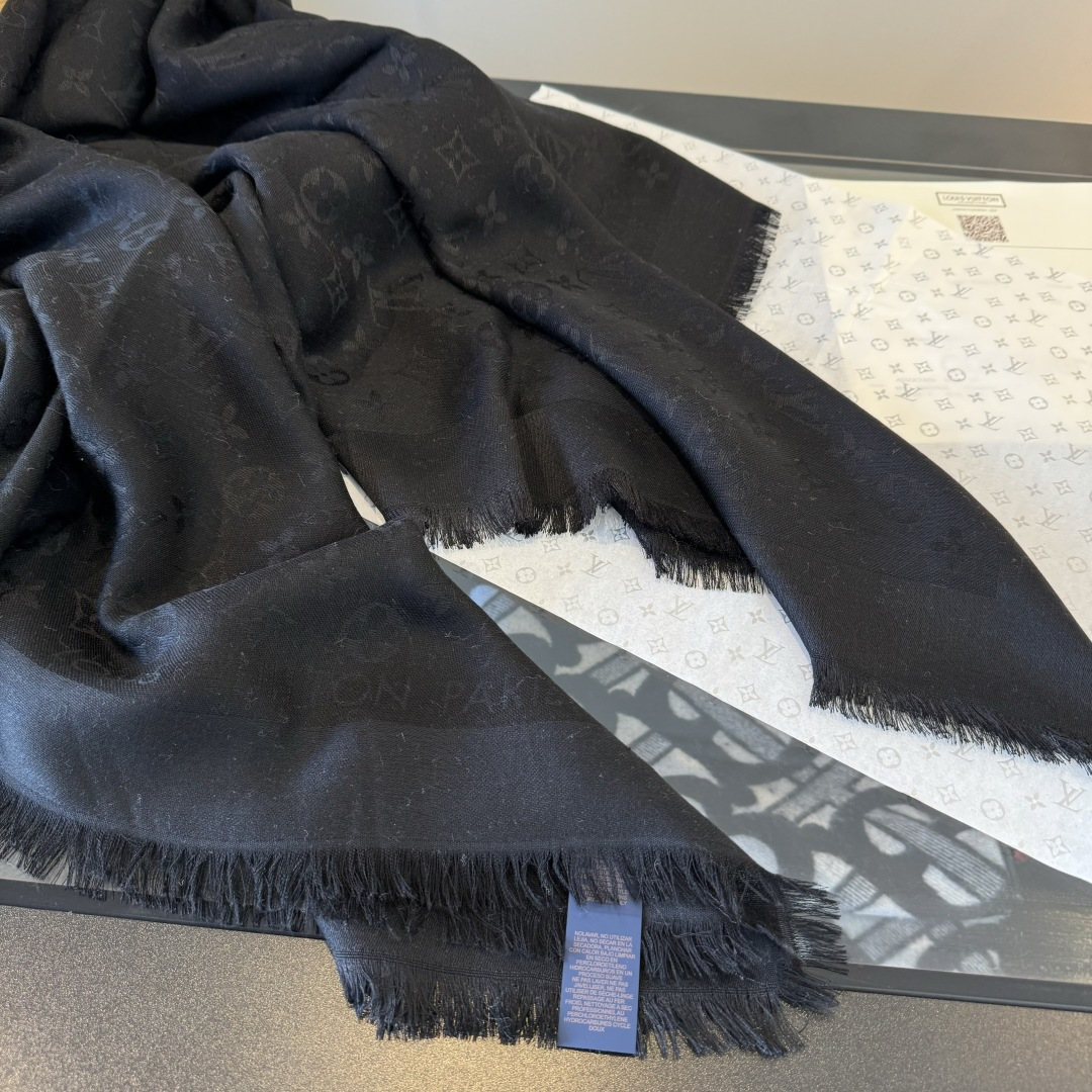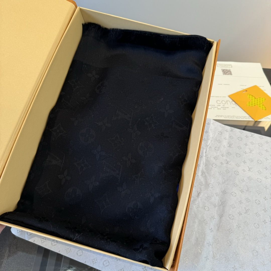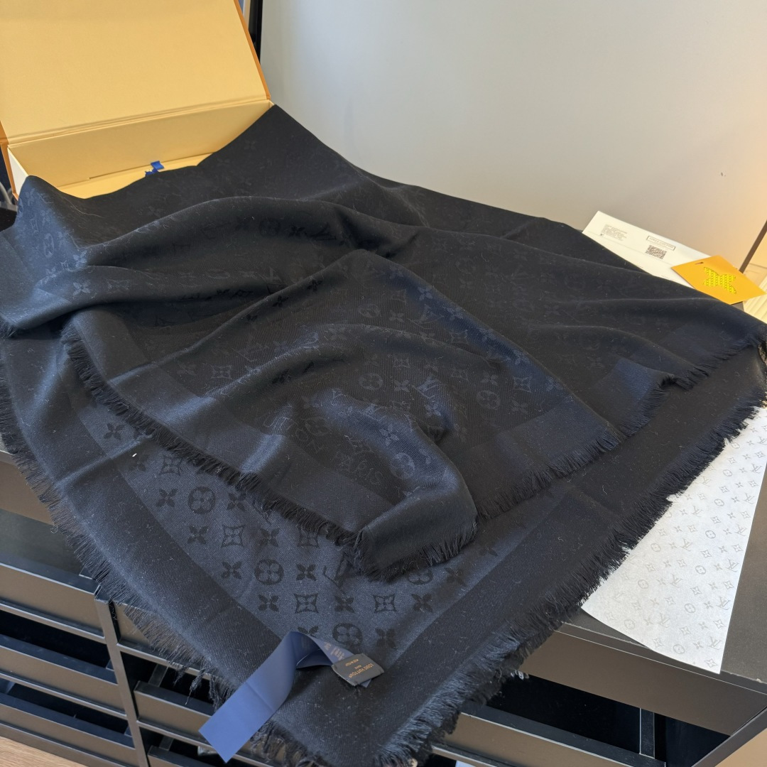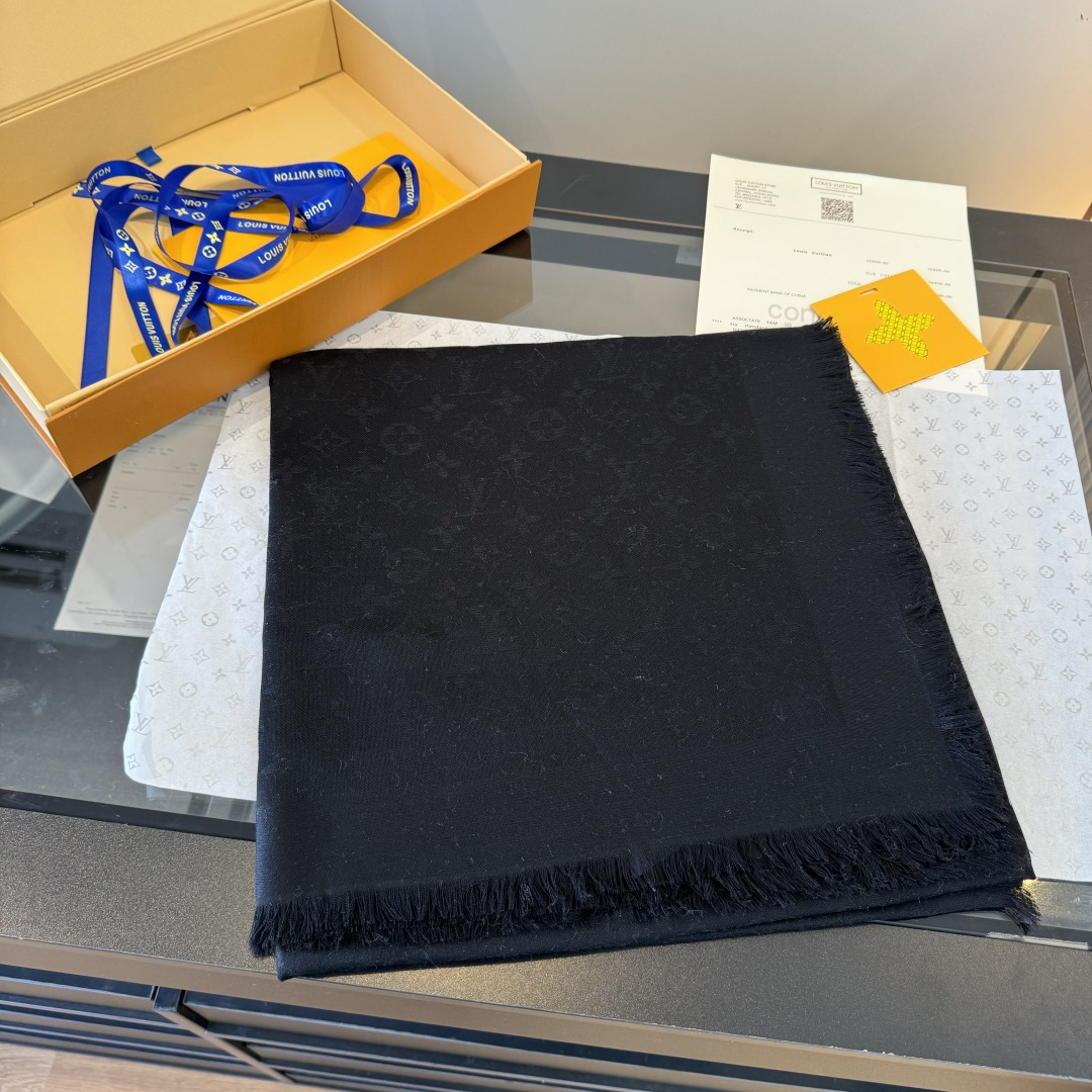 Louis Vuitton Black Monogram Shawl elegant - The Louis Vuitton Black Monogram Shawl is an exquisite accessory that seamlessly blends luxury and style. Crafted from a delicate silk and wool blend, this shawl features the iconic Louis Vuitton monogram pattern, making it a timeless piece for any wardrobe. Its elegant black hue ensures versatility, allowing it to complement a variety of outfits and occasions. The Louis Vuitton Black Monogram Shawl is more than just a scarf; it's a statement of sophistication and refined taste. Whether draped over your shoulders on a cool evening or styled as a chic accessory during the day, this shawl adds a touch of elegance to any ensemble. You can explore our store collection for more luxury accessories.
