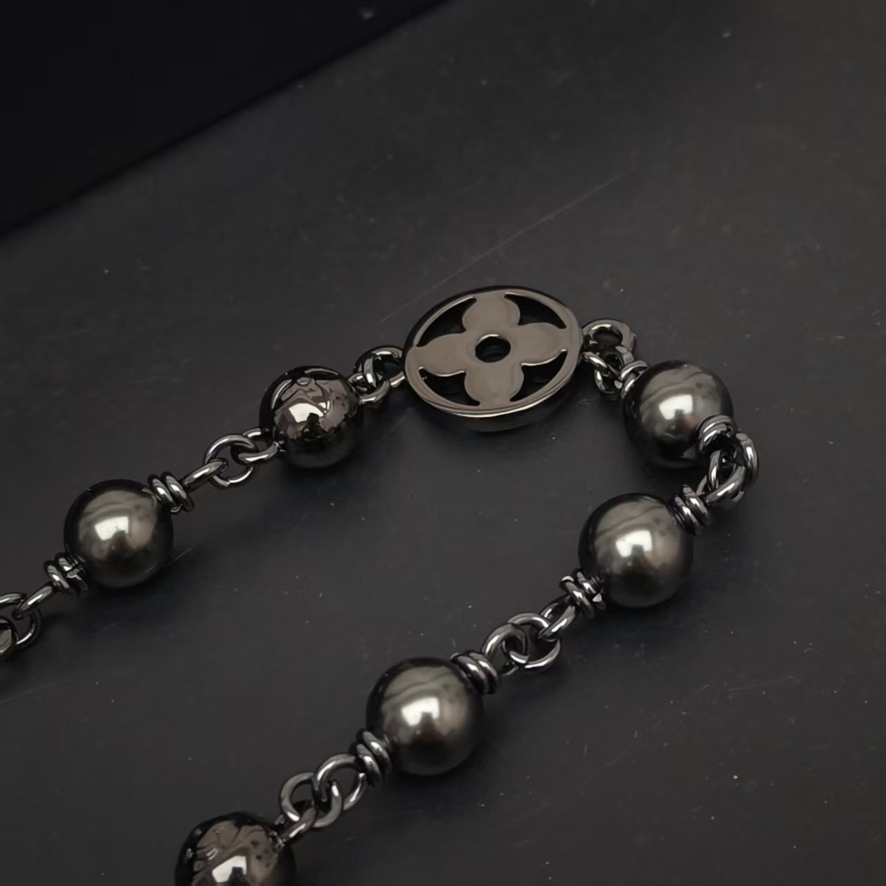 Louis Vuitton Black Pearl Chain Necklace - Gunmetal Finish