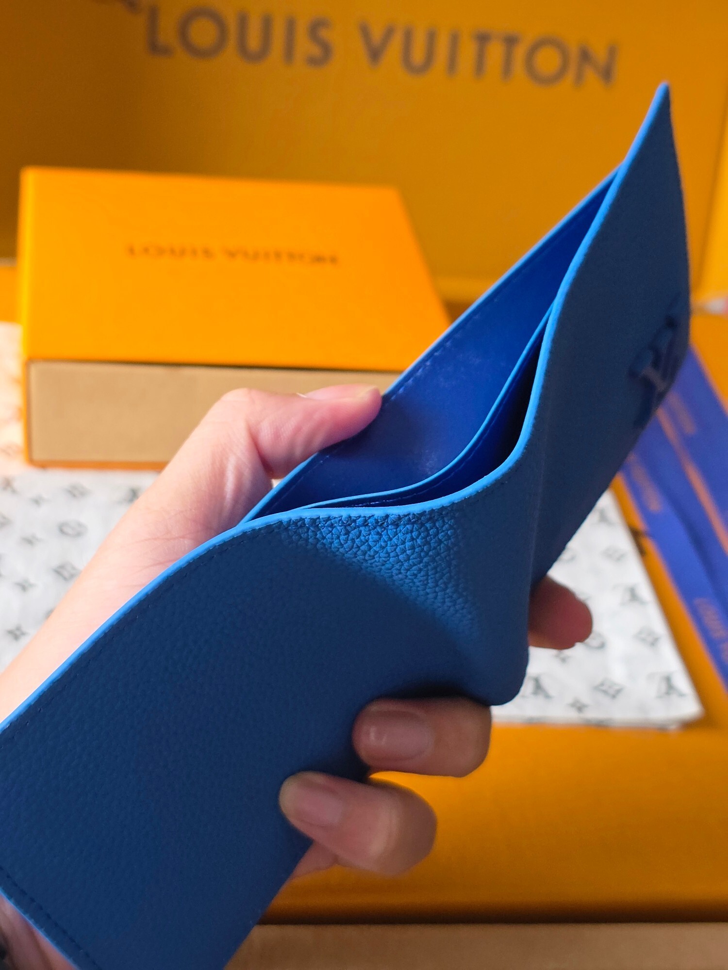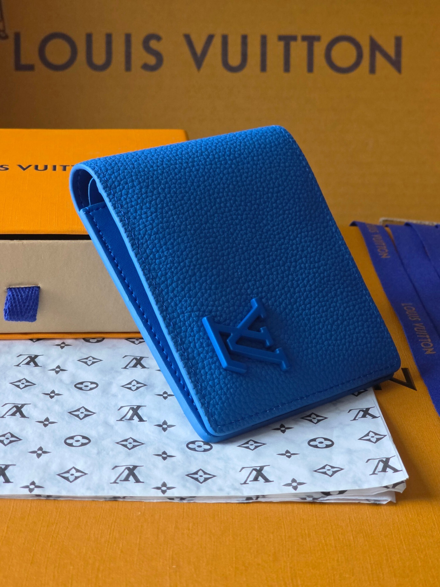 Introducing the Louis Vuitton Blue Leather Bifold Wallet