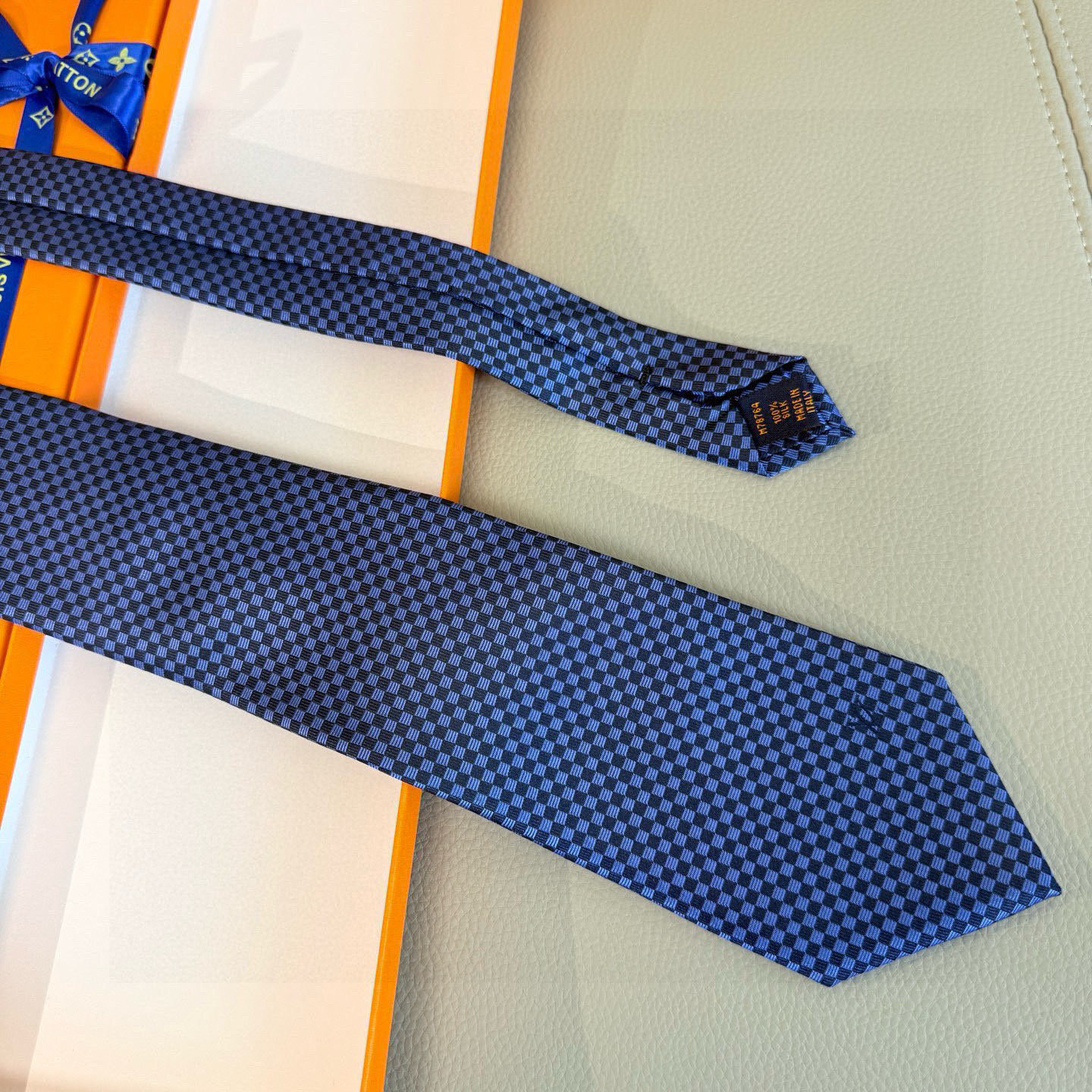 Key Features of the Louis Vuitton Blue Damiers Silk Tie