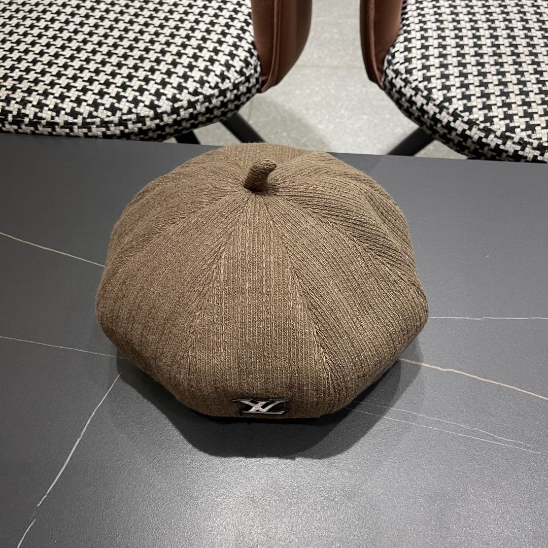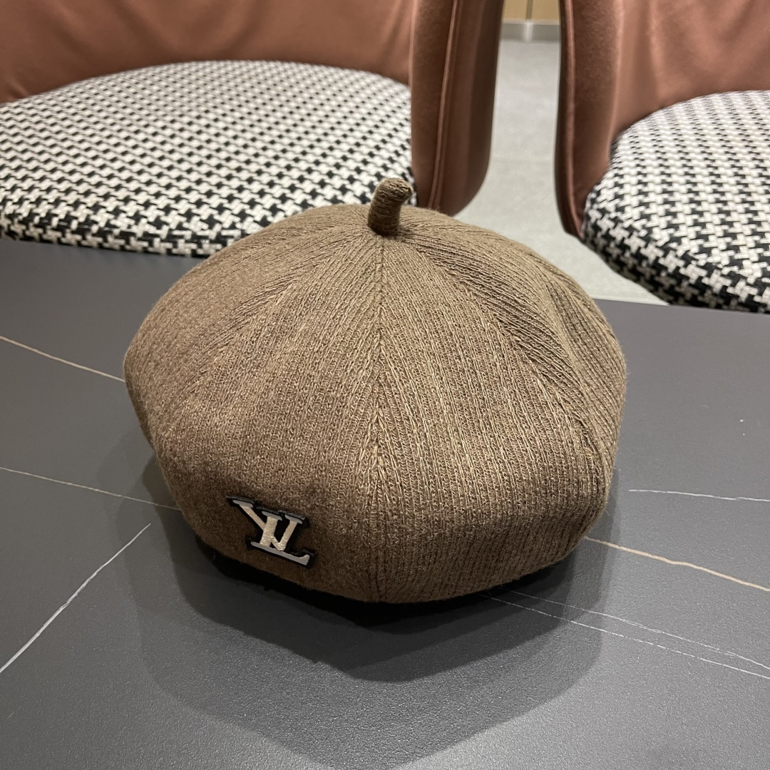 Louis Vuitton Brown Knit Beret - Designer Wool Hat