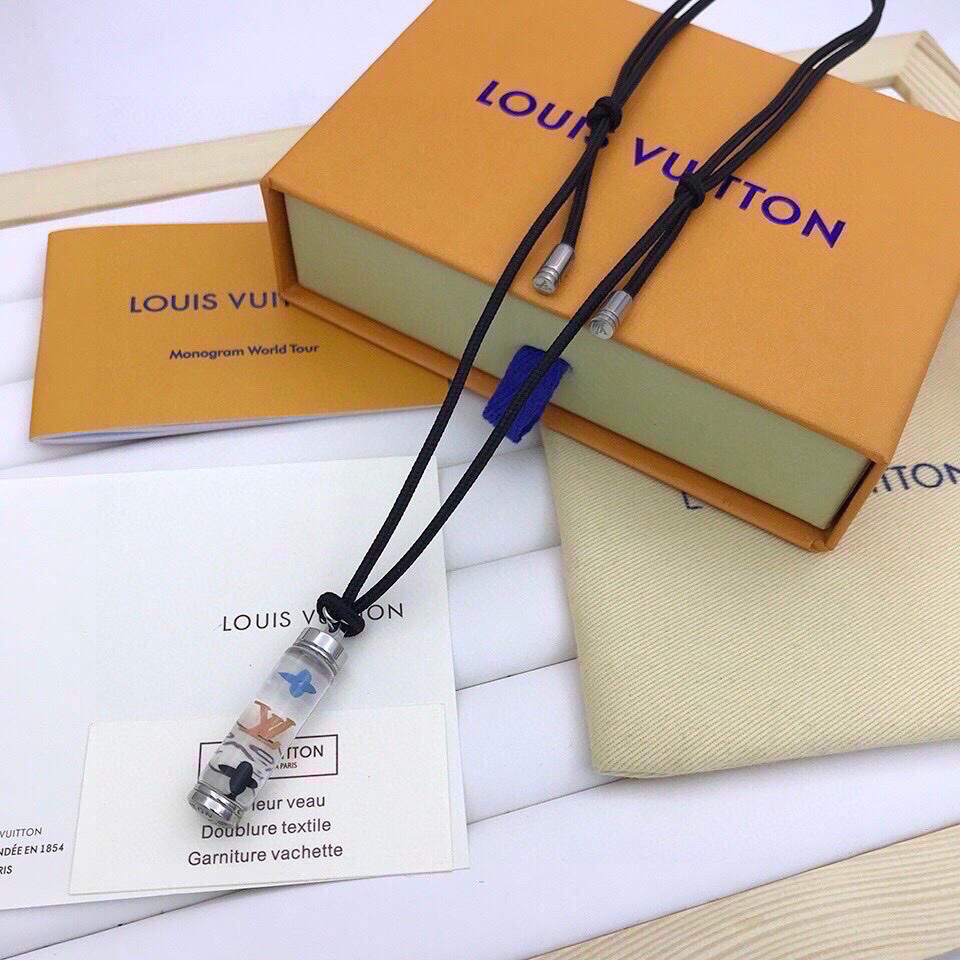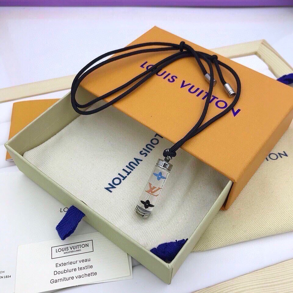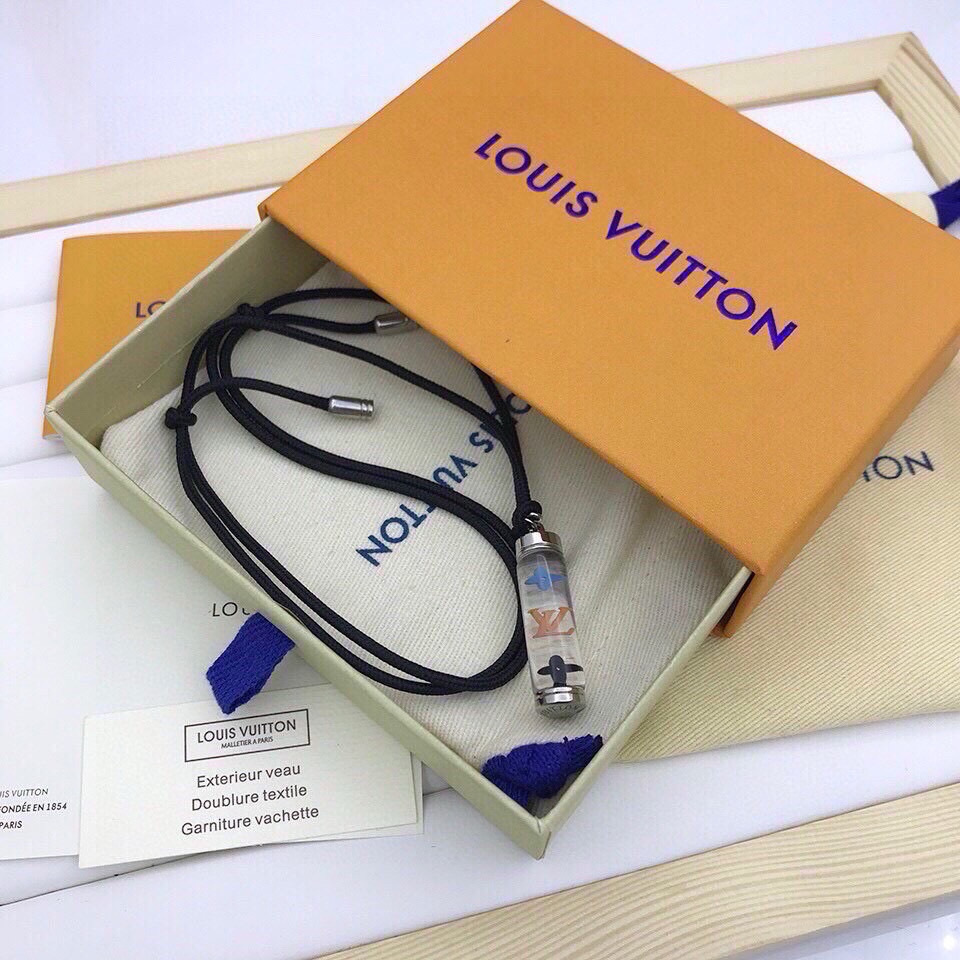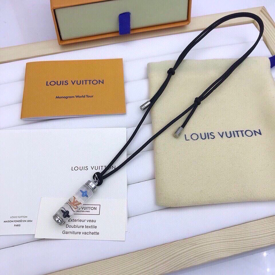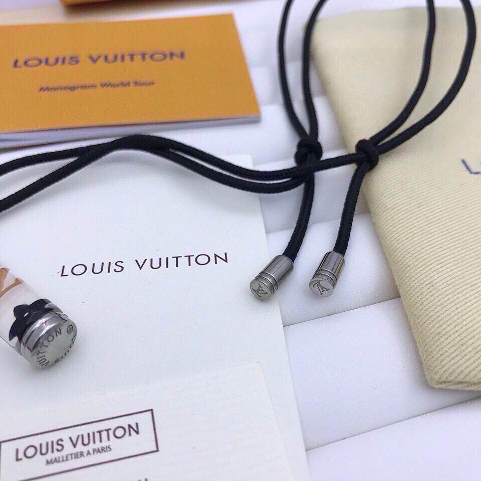 This necklace is not just an accessory; it's a piece of art. The delicate monogram flowers encased in the clear capsule create a mesmerizing visual effect, catching the light and drawing attention. The black cord provides a modern contrast to the classic monogram pattern, making it versatile enough to wear with both casual and formal attire. The Louis Vuitton Monogram Flower Capsule Necklace is a conversation starter, a symbol of luxury, and a testament to your unique style. It's a must-have for any fashion enthusiast looking to make a bold yet elegant statement.