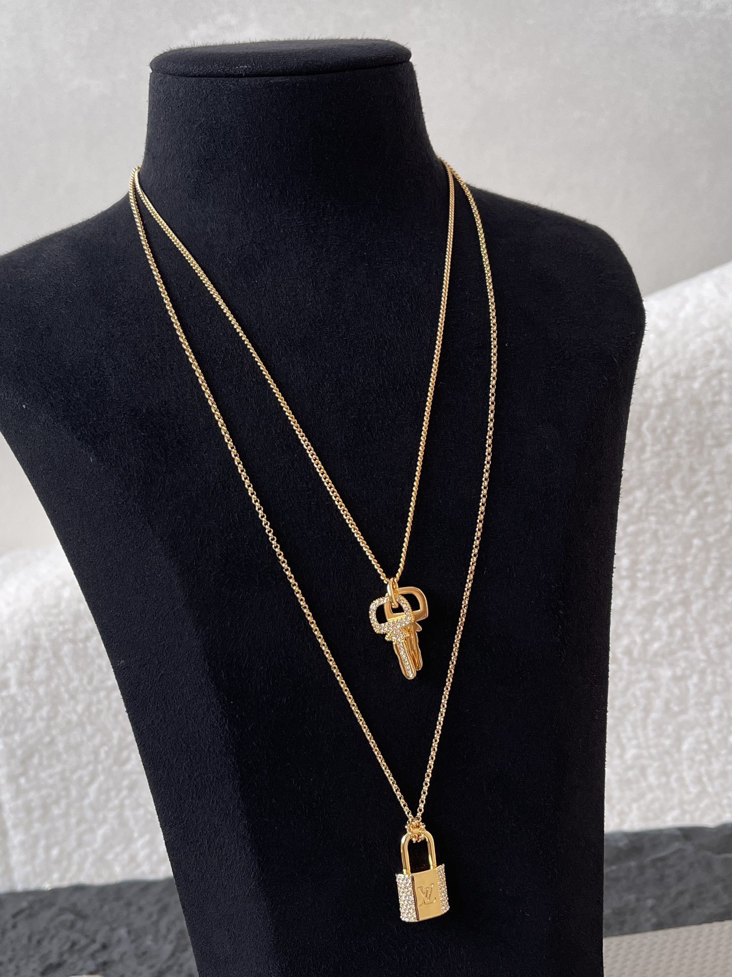 Louis Vuitton Gold Lock and Key Necklace - Layered Charm