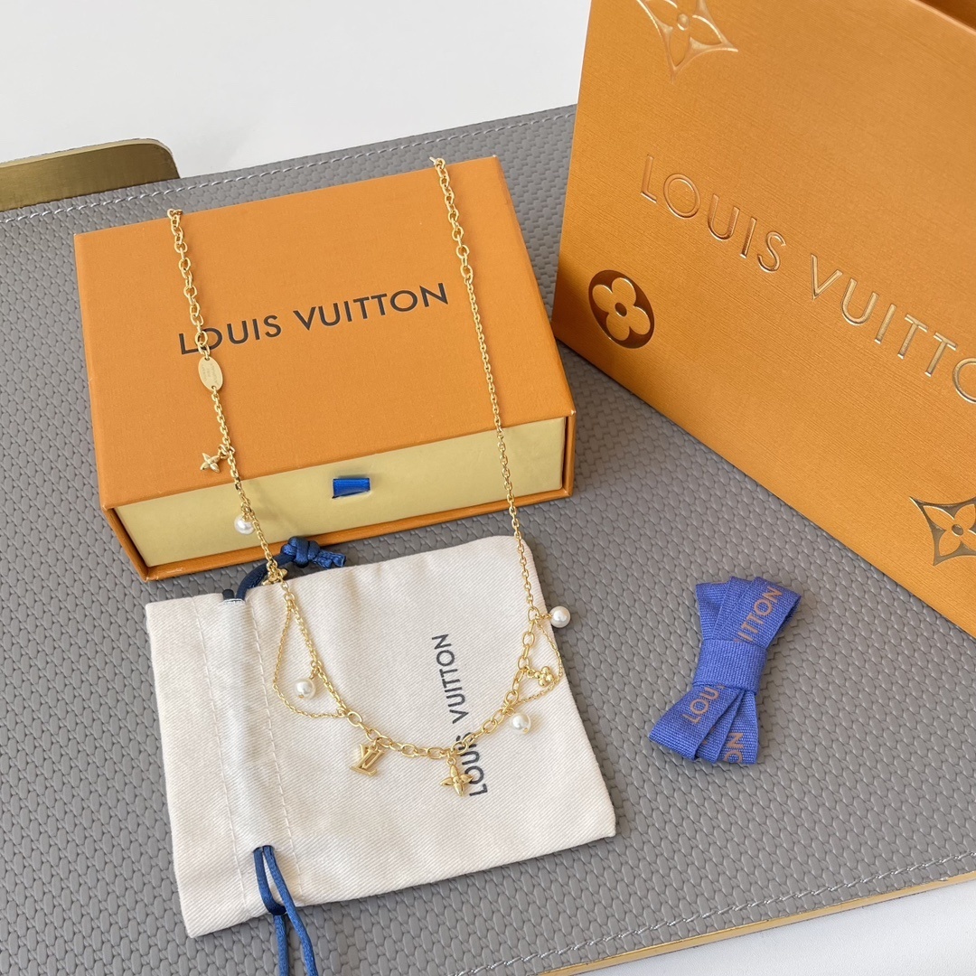 One of the most appealing aspects of the Louis Vuitton Golden Chain Pearl Necklace is its versatility. It can be paired with a wide range of outfits, from casual daytime looks to elegant evening ensembles. Whether you're dressing up for a formal event or adding a touch of sophistication to your everyday attire, this necklace is sure to make a statement.