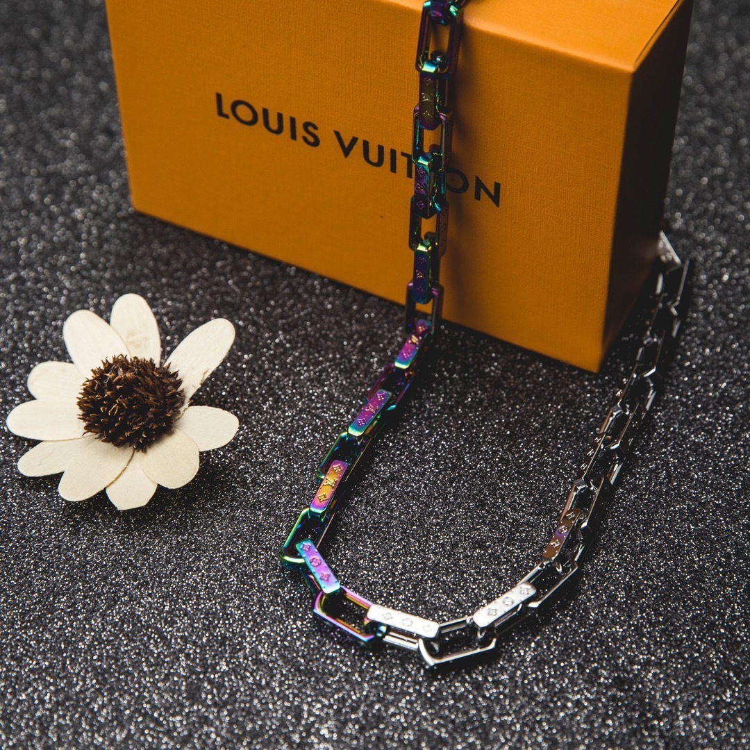 The Louis Vuitton Iridescent Chain Necklace is more than just a piece of jewelry; it's an investment in style and quality. Its unique iridescent finish and iconic Louis Vuitton monogram make it a standout accessory that will elevate any outfit. Whether you're looking to make a bold statement or add a touch of luxury to your everyday look, this necklace is the perfect choice.