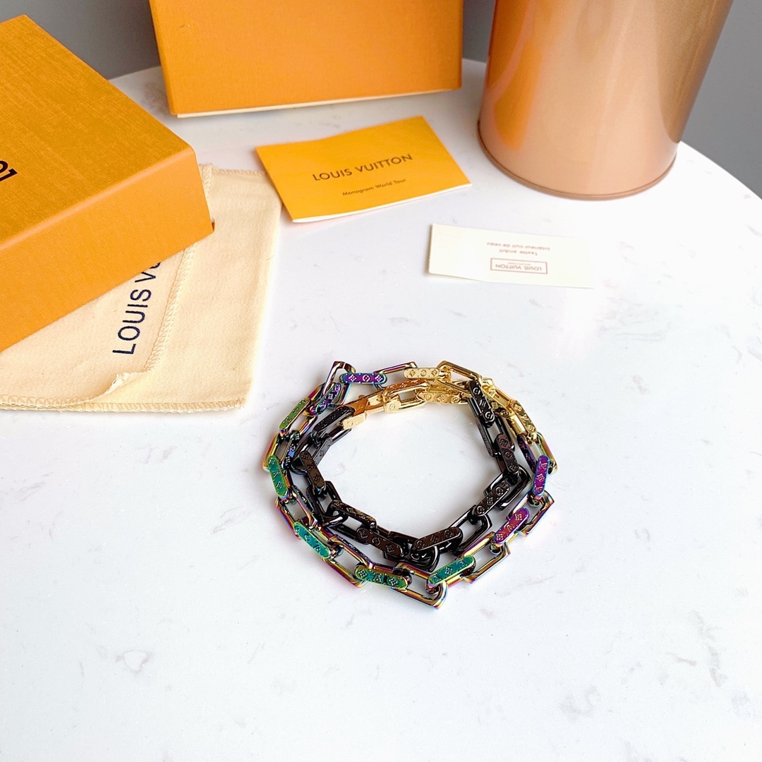 The Louis Vuitton Iridescent Chain Bracelet can be worn on its own or paired with other bracelets for a layered look. For a casual look, wear it with a simple watch or a few delicate bangles. For a more formal occasion, pair it with other statement bracelets or wear it on its own to let the iridescent finish shine.