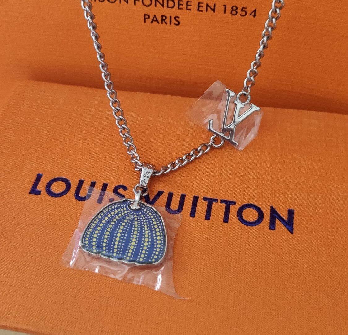 Louis Vuitton Kusama Necklace - The Louis Vuitton Silver Yayoi Kusama Necklace is a stunning piece of jewelry that perfectly blends the iconic elegance of Louis Vuitton with the whimsical artistry of Yayoi Kusama. This limited-edition necklace is a true collector's item, embodying luxury, creativity, and a touch of avant-garde style. Featuring a silver chain and a unique pendant design, this necklace is perfect for those who appreciate high fashion and artistic expression.