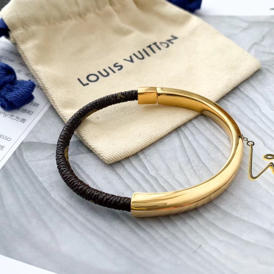 Louis Vuitton Premium Leather & Gold Bracelet