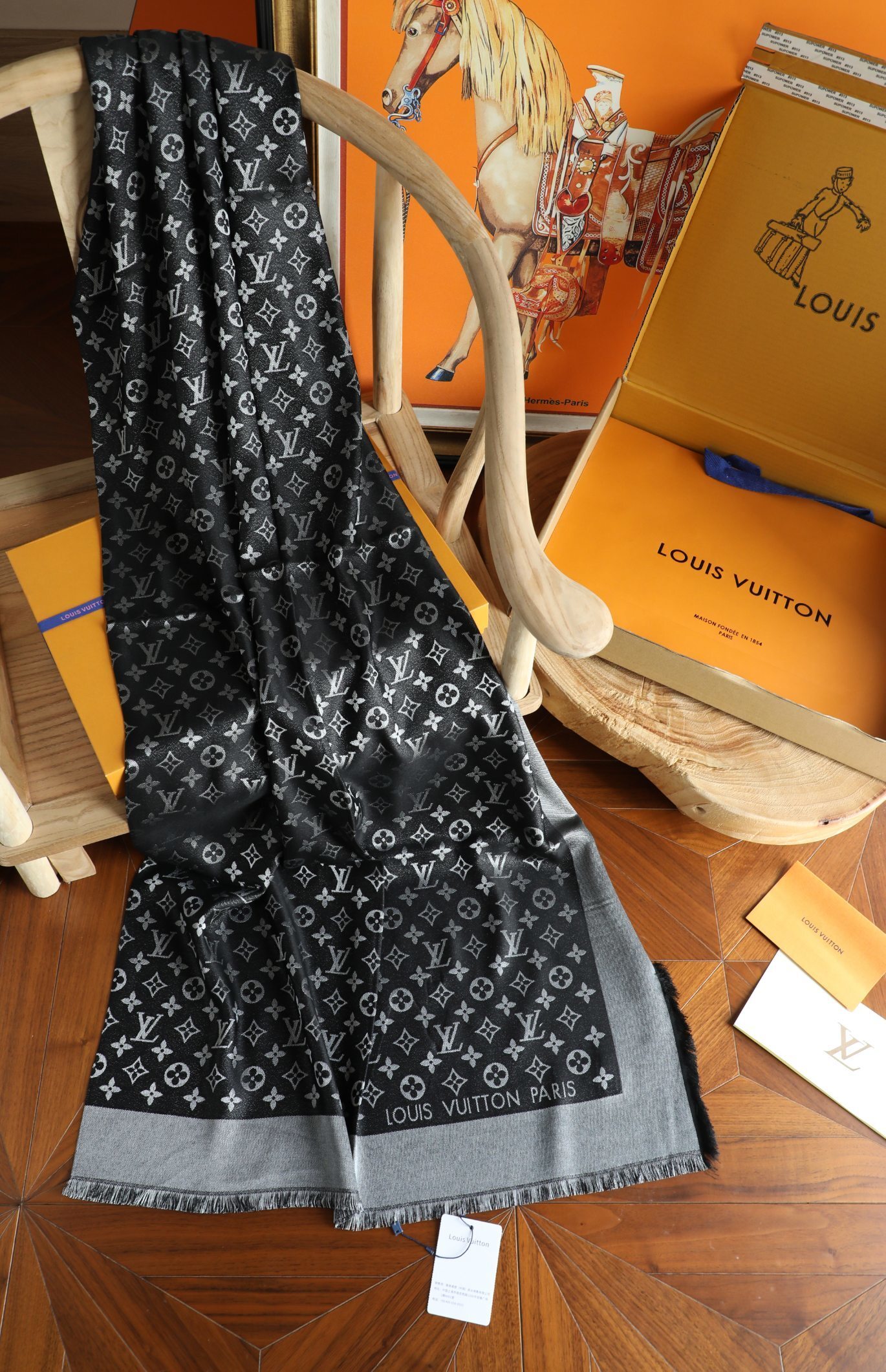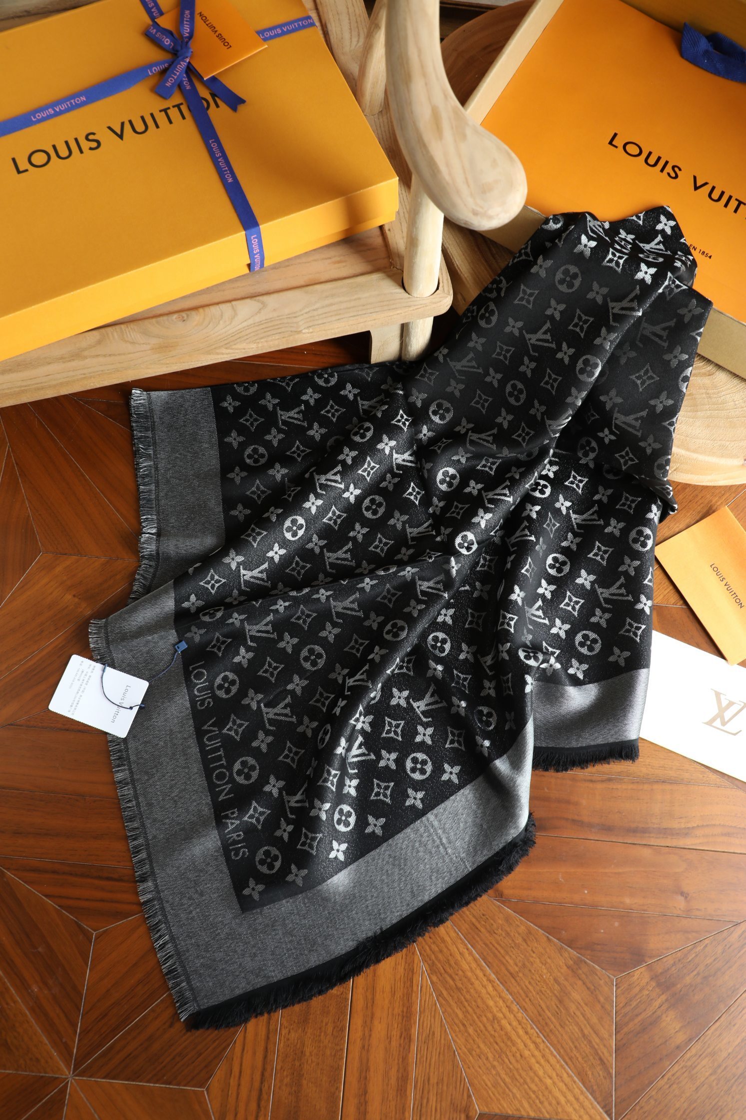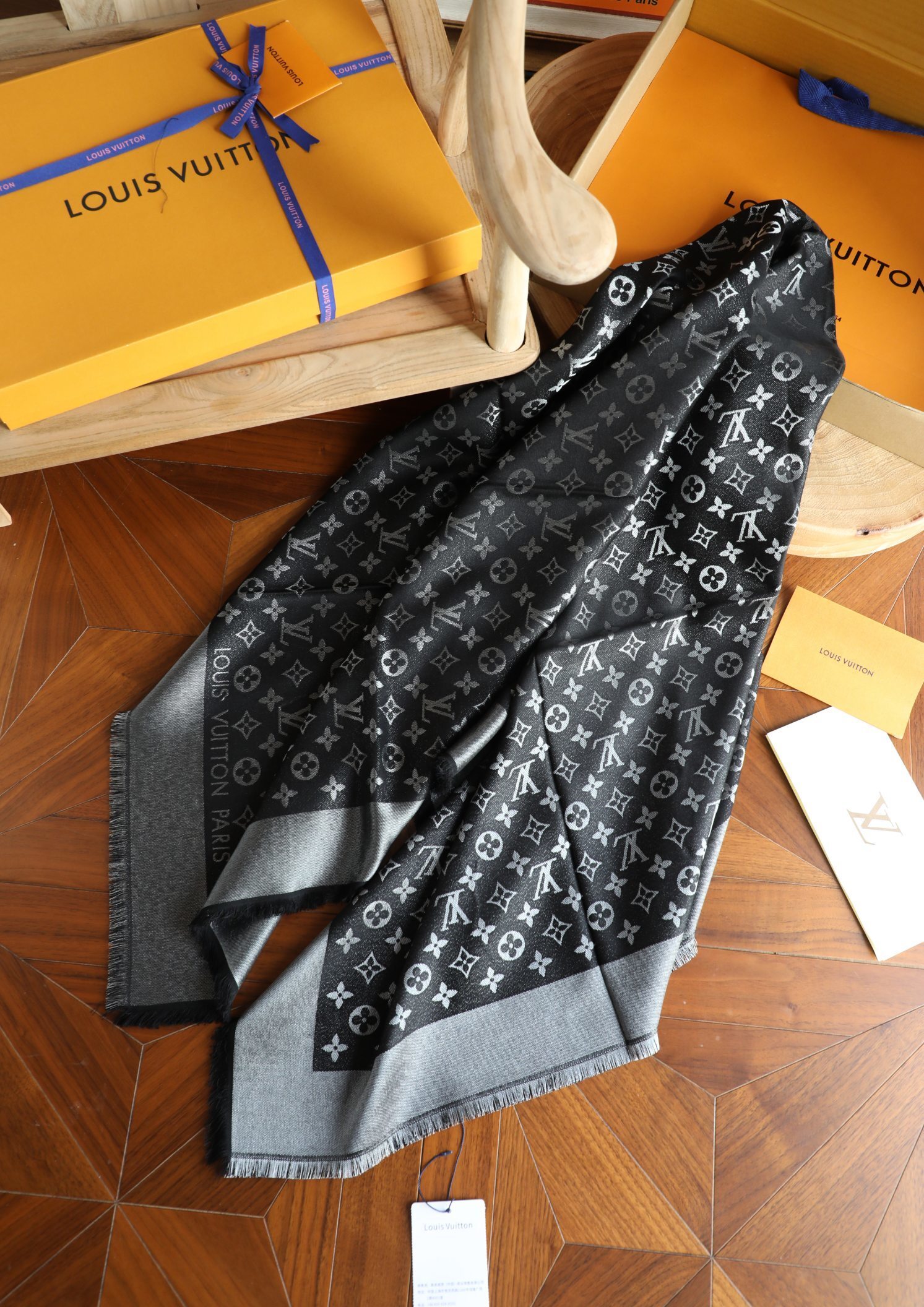 - Introducing the Louis Vuitton Black Silver Lurex Shawl