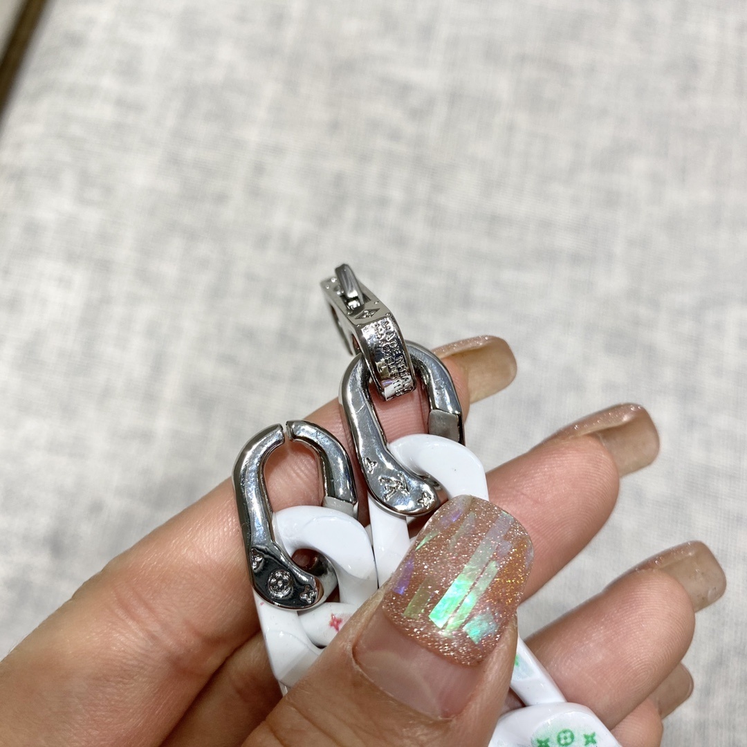 - Elegant Finish: The white chain is accented with colorful monogram details, creating a unique and eye-catching look.