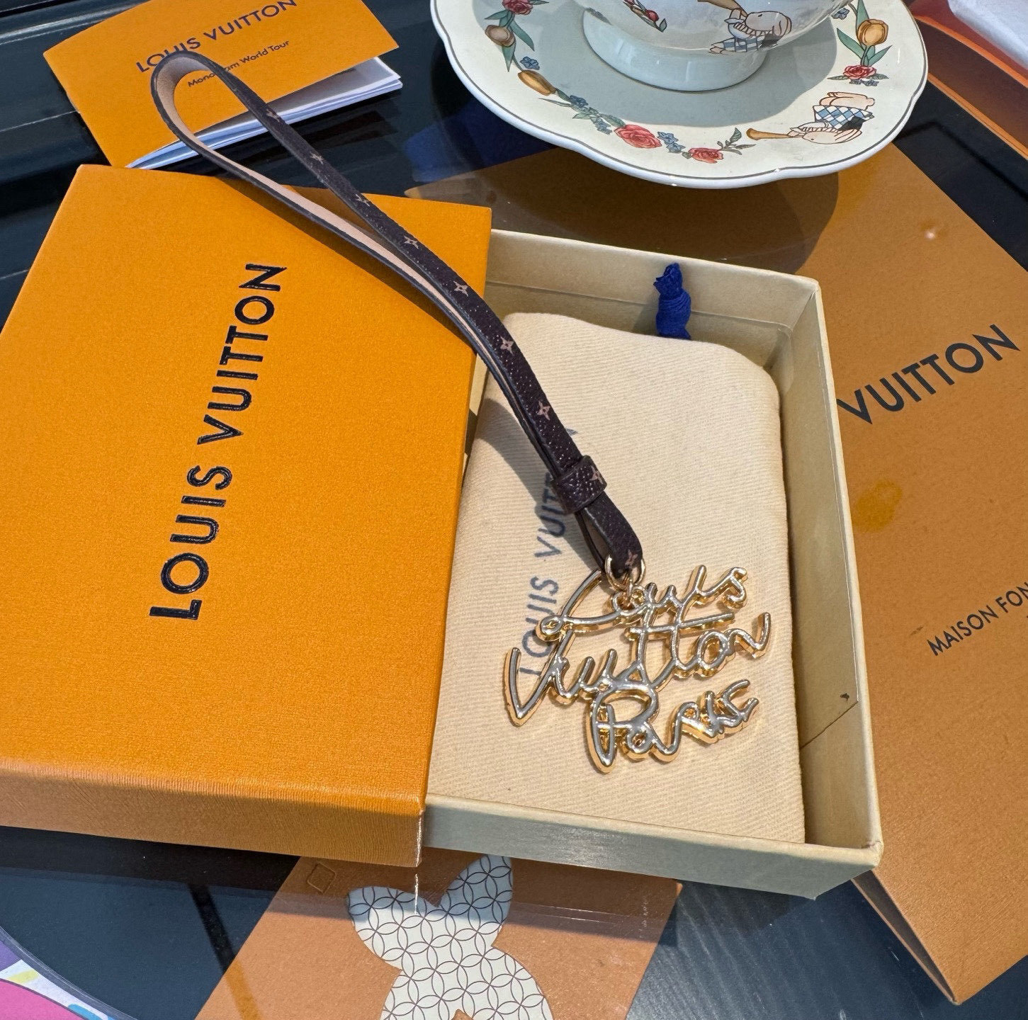 Louis Vuitton Paris Charm - Elevate your handbag game with the exquisite Louis Vuitton Paris Signature Bag Charm. This elegant accessory is designed to add a touch of luxury and sophistication to your favorite Louis Vuitton bags, or any other handbag you choose. The charm features the iconic Louis Vuitton signature in a beautiful cursive font, crafted with meticulous attention to detail. Its golden finish exudes opulence and timeless style, making it the perfect statement piece to showcase your refined taste.