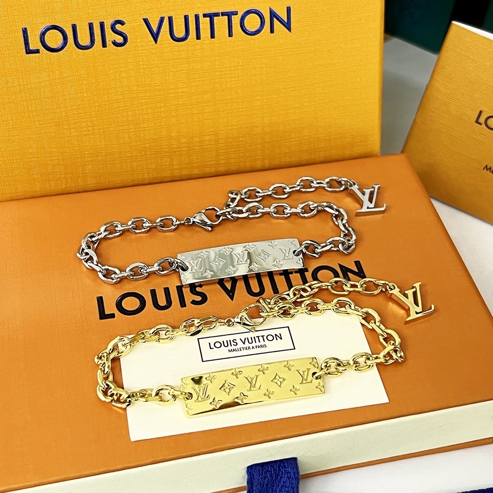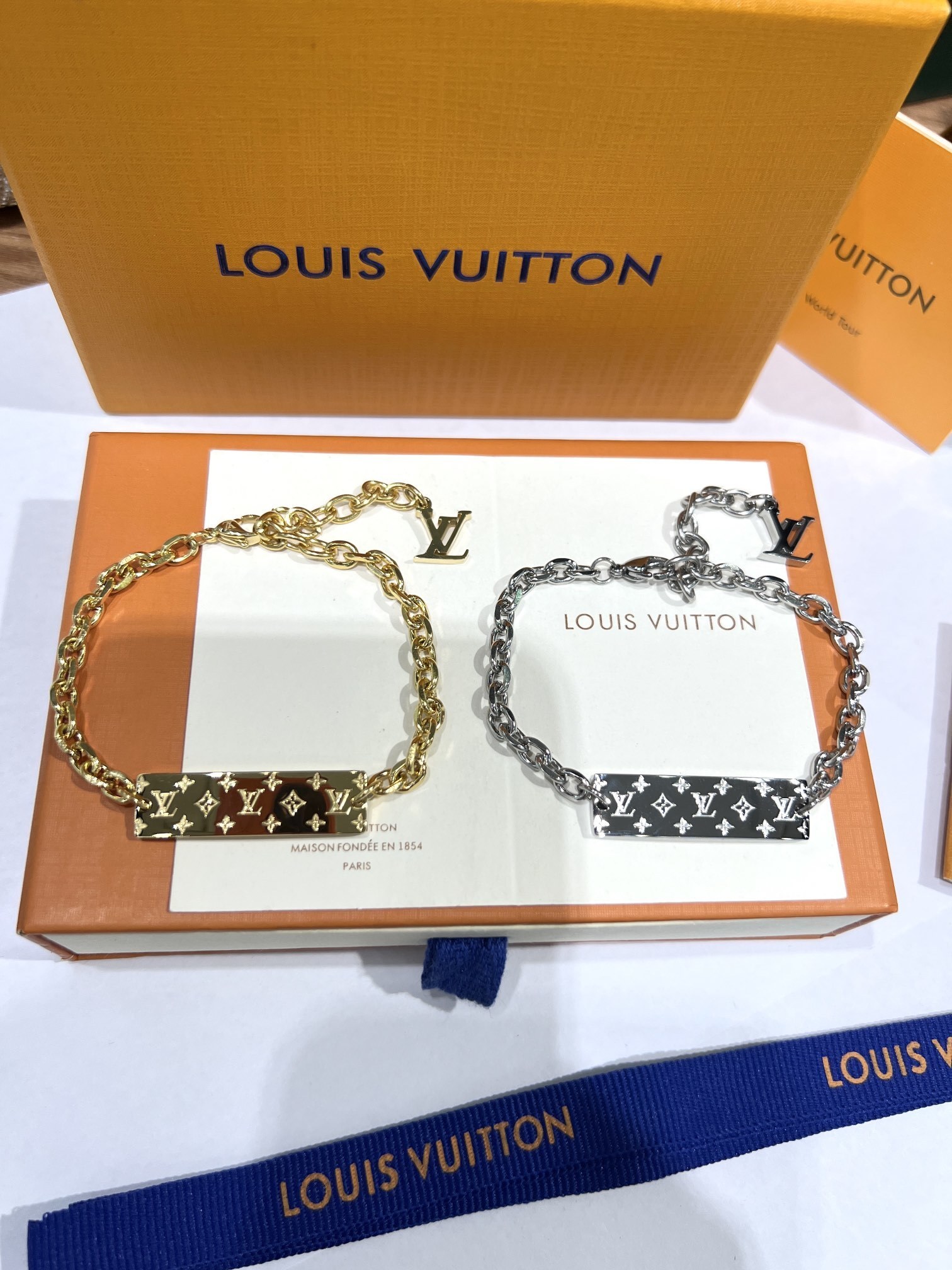 This premium bracelet showcases the iconic Louis Vuitton design, making it a coveted piece for fashion enthusiasts. Available in both gold and silver finishes, it complements any outfit, adding a touch of elegance to your everyday look or special occasions.