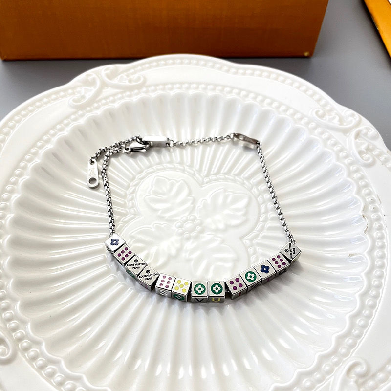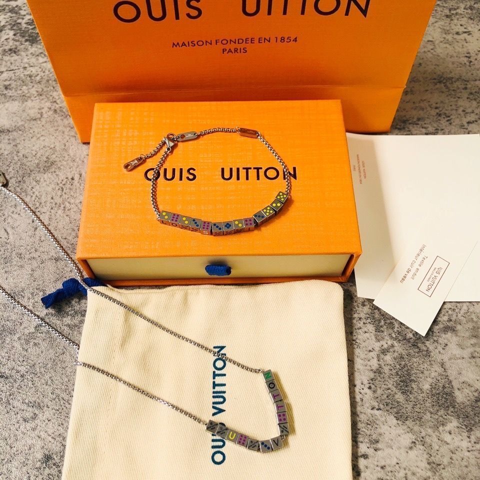 The Louis Vuitton Silver Cube Charm Set boasts several standout features that make it a must-have accessory. The cube charms are crafted with precision, featuring colorful designs and the iconic Louis Vuitton logo, which add a playful yet sophisticated touch. The silver chain is delicate yet durable, ensuring comfortable wear and longevity. The set includes both a necklace and a bracelet, providing versatility and allowing you to create coordinated looks. The lobster clasp closures are secure and easy to use, ensuring that your jewelry stays in place. The overall design of the Louis Vuitton Silver Cube Charm Set is both timeless and contemporary, making it a versatile addition to any jewelry collection.