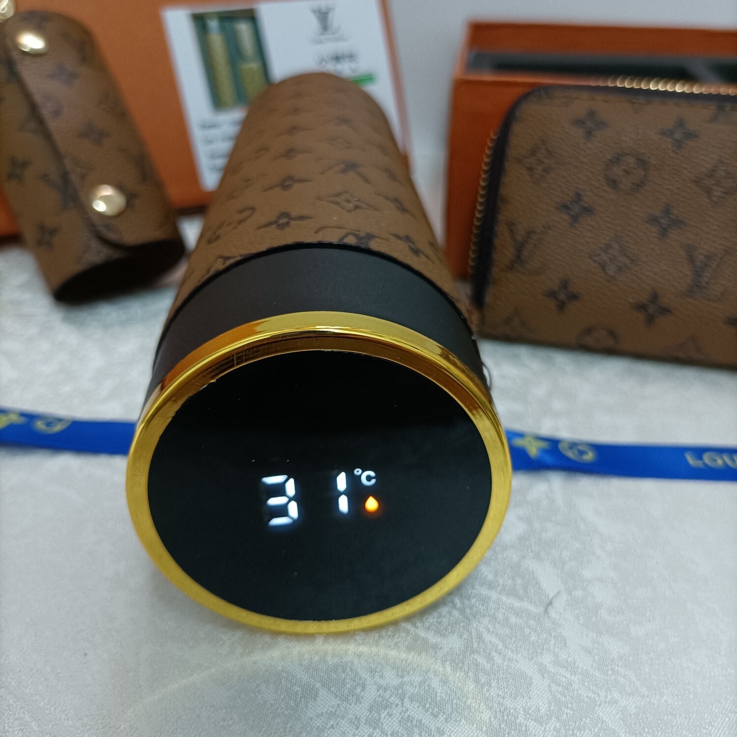The Louis Vuitton Monogram Brown Smart Thermos boasts several outstanding features that set it apart from ordinary thermoses. The exterior showcases the timeless Louis Vuitton monogram pattern, instantly recognizable and synonymous with luxury. The body is constructed from premium materials, providing excellent insulation and resistance to wear and tear. The interior is made of food-grade stainless steel, ensuring that your drinks remain pure and free from unwanted tastes. The smart temperature display is seamlessly integrated into the design, offering real-time temperature readings with a simple touch.