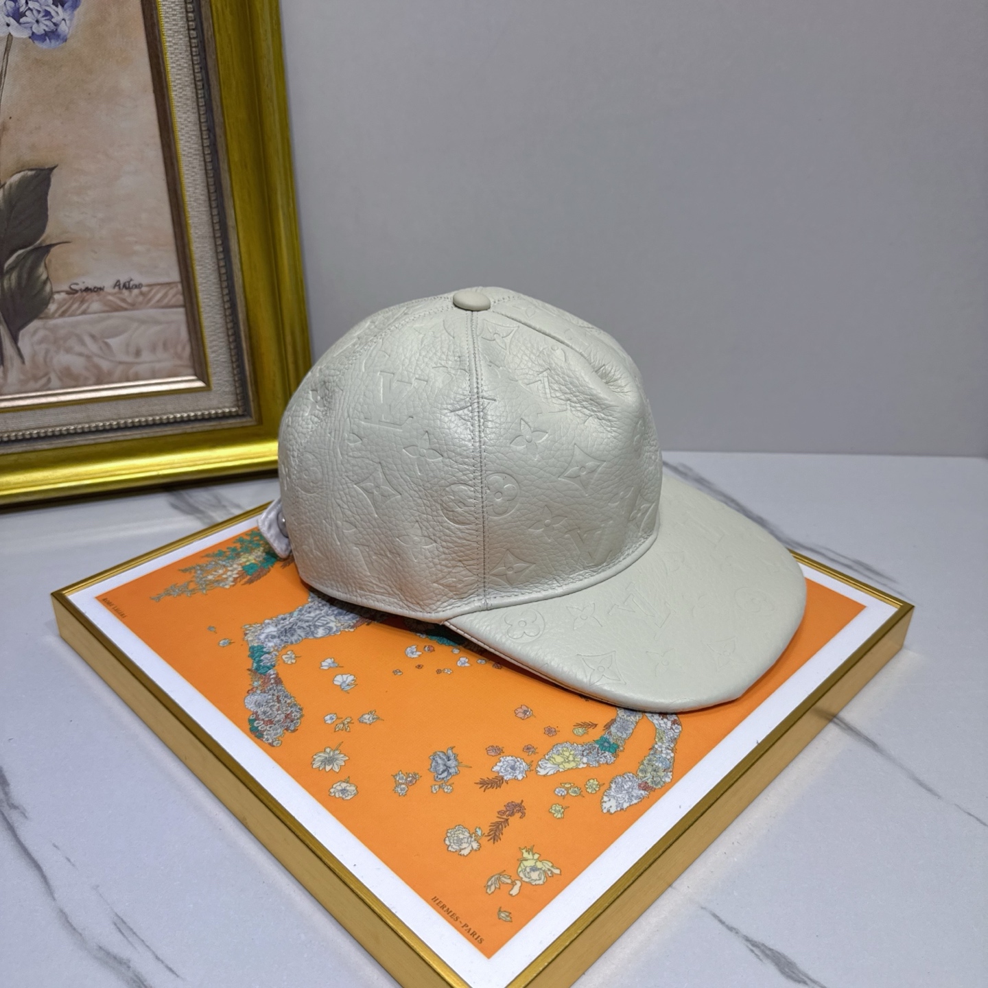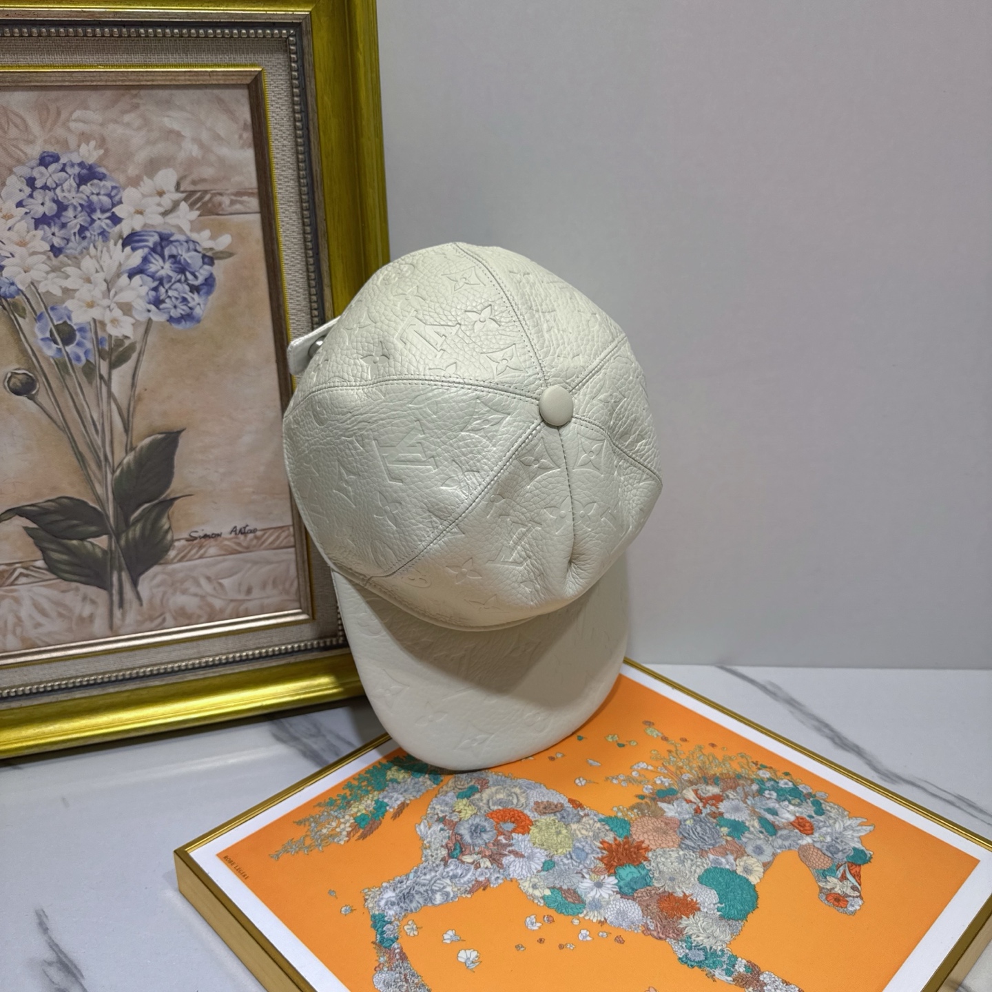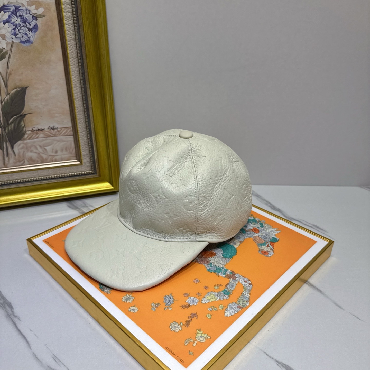 Introducing the Louis Vuitton White Leather Embossed Cap