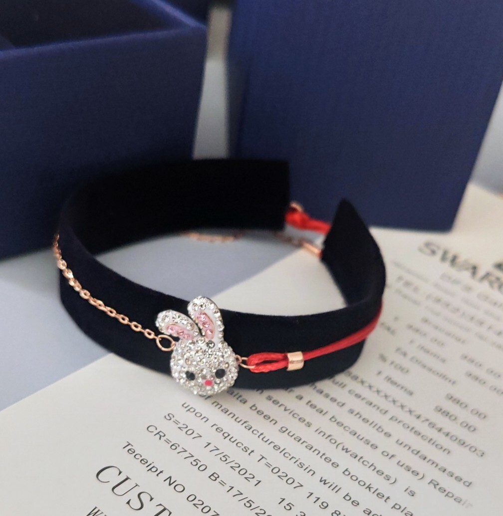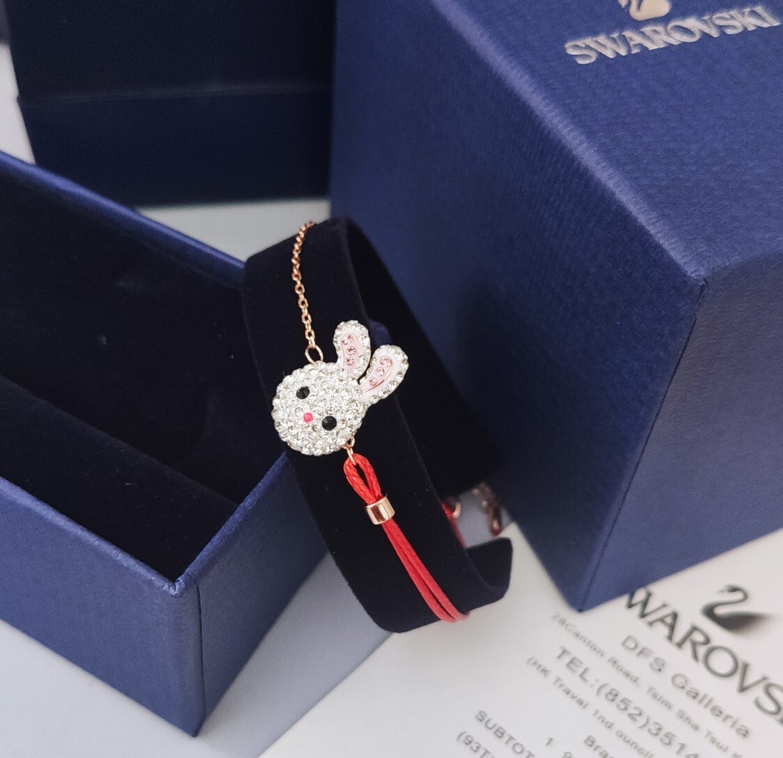 Introducing the enchanting Lucky Rabbit Charm Bracelet, a symbol of prosperity and good fortune. This premium bracelet is meticulously crafted with genuine Swarovski crystals, radiating brilliance and sophistication. The adorable rabbit charm, intricately designed and adorned with sparkling crystals, adds a playful yet elegant touch to your style. Whether you're looking for a unique accessory or a meaningful gift, this bracelet is sure to captivate hearts and bring a smile to your face.