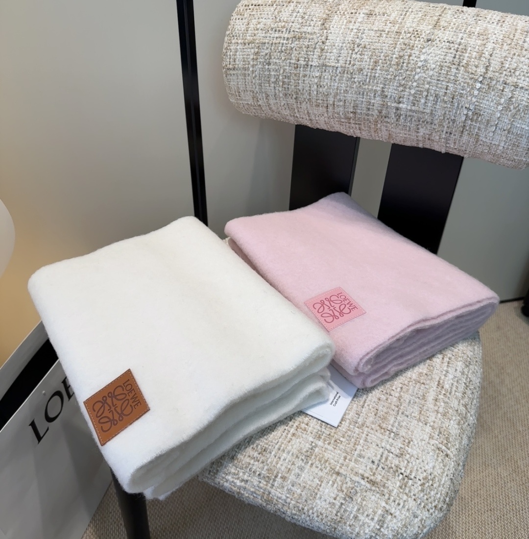 The scarf features a subtly embossed Loewe logo, a hallmark of the brand's commitment to quality and craftsmanship. The logo is discreetly placed, adding a touch of luxury without being overly ostentatious. It serves as a reminder of the scarf's exceptional quality and timeless design.