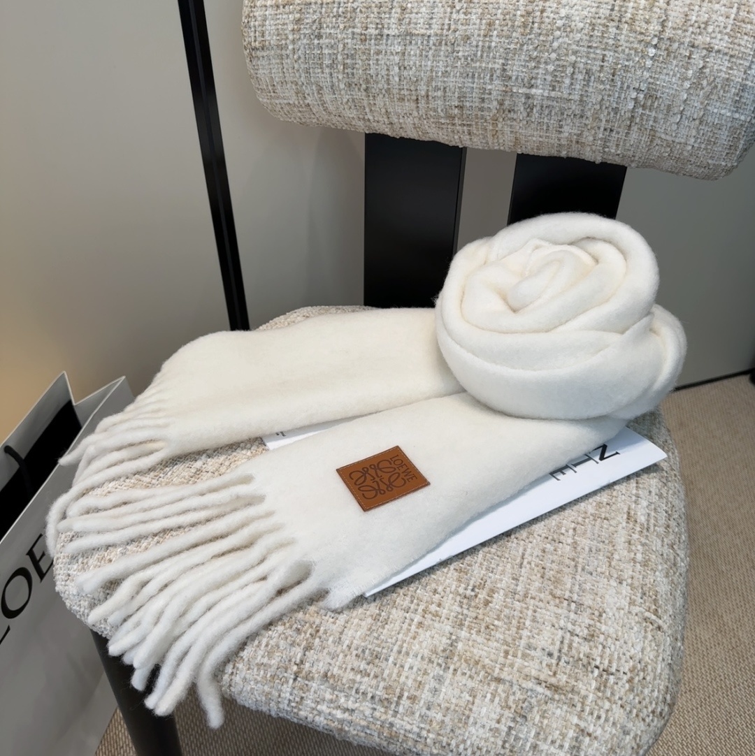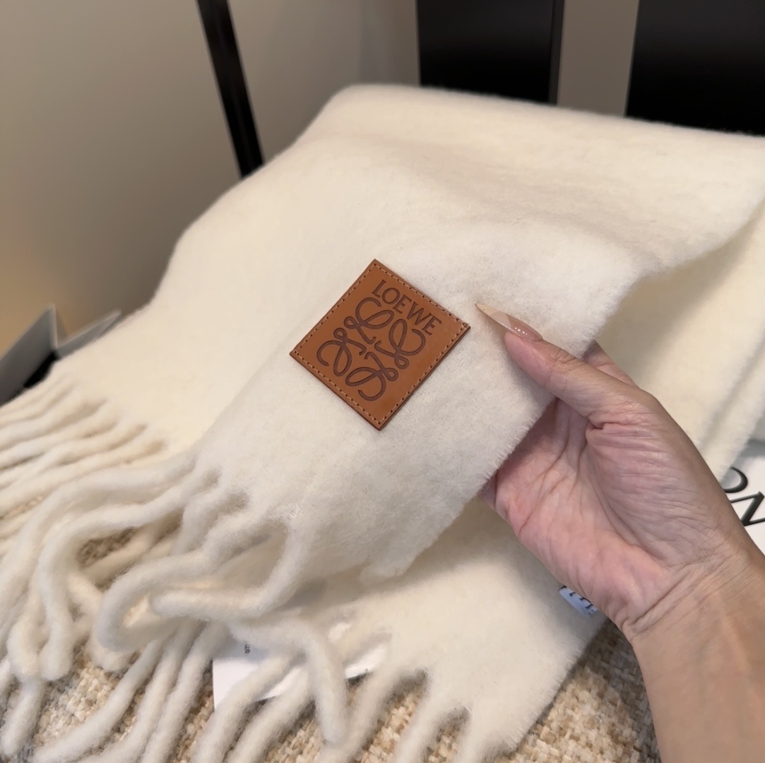 - luxurious Loewe Off-White Mohair Scarf Features
