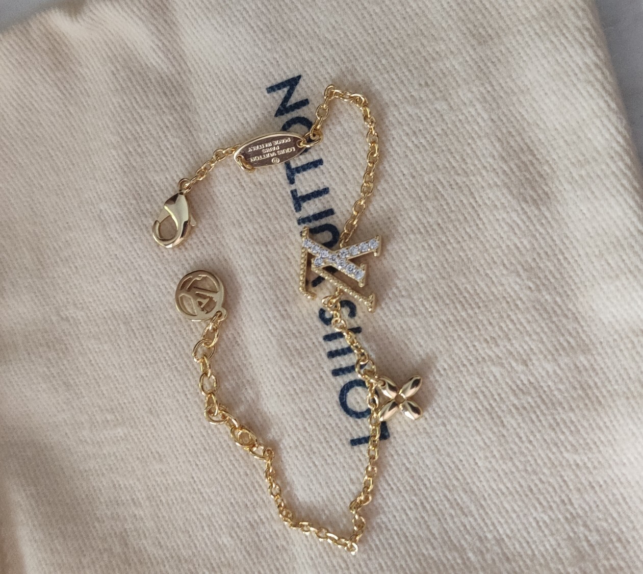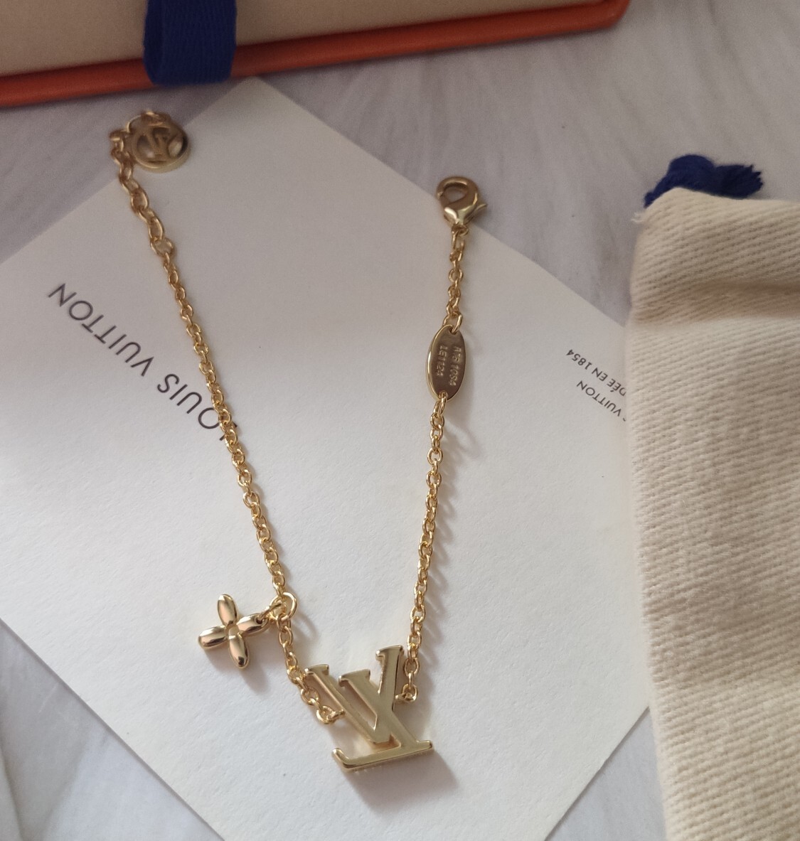 Our charm bracelet features a delicate gold-tone chain adorned with iconic charms. The intricate detailing and sparkling accents catch the light beautifully, creating a dazzling effect.