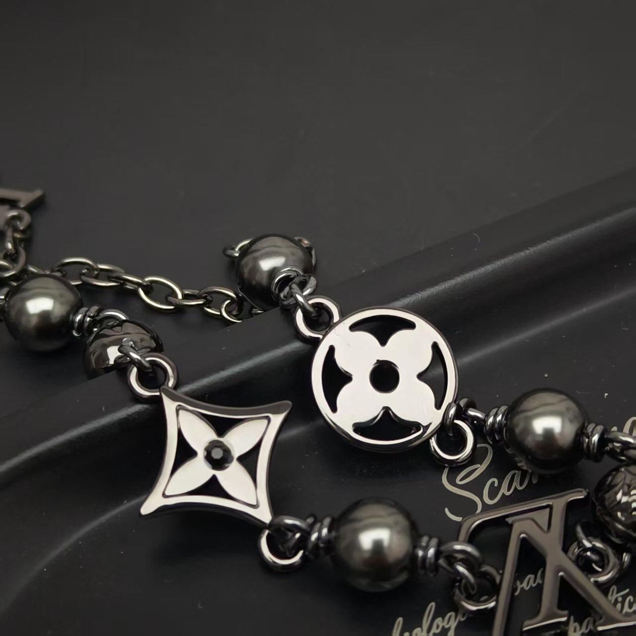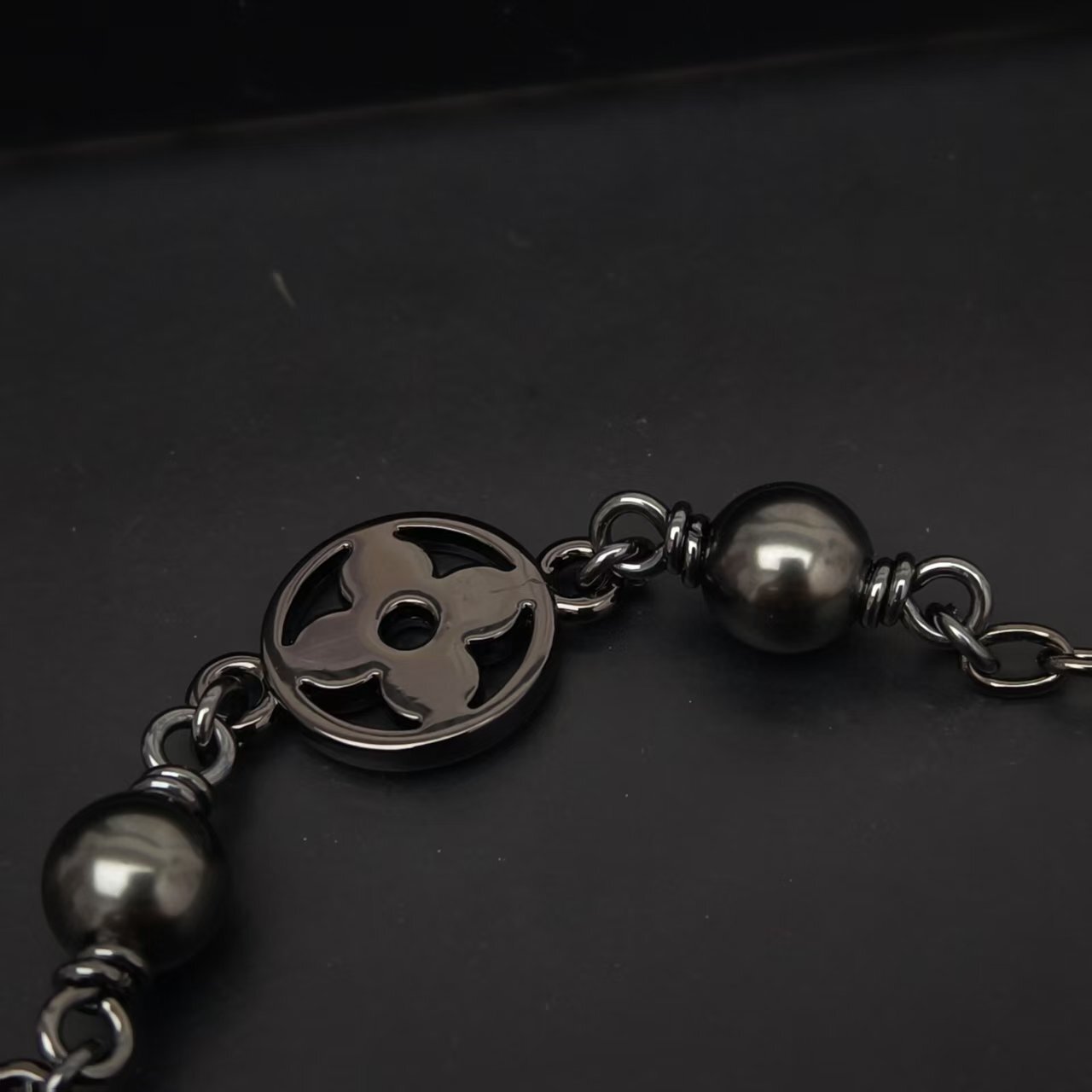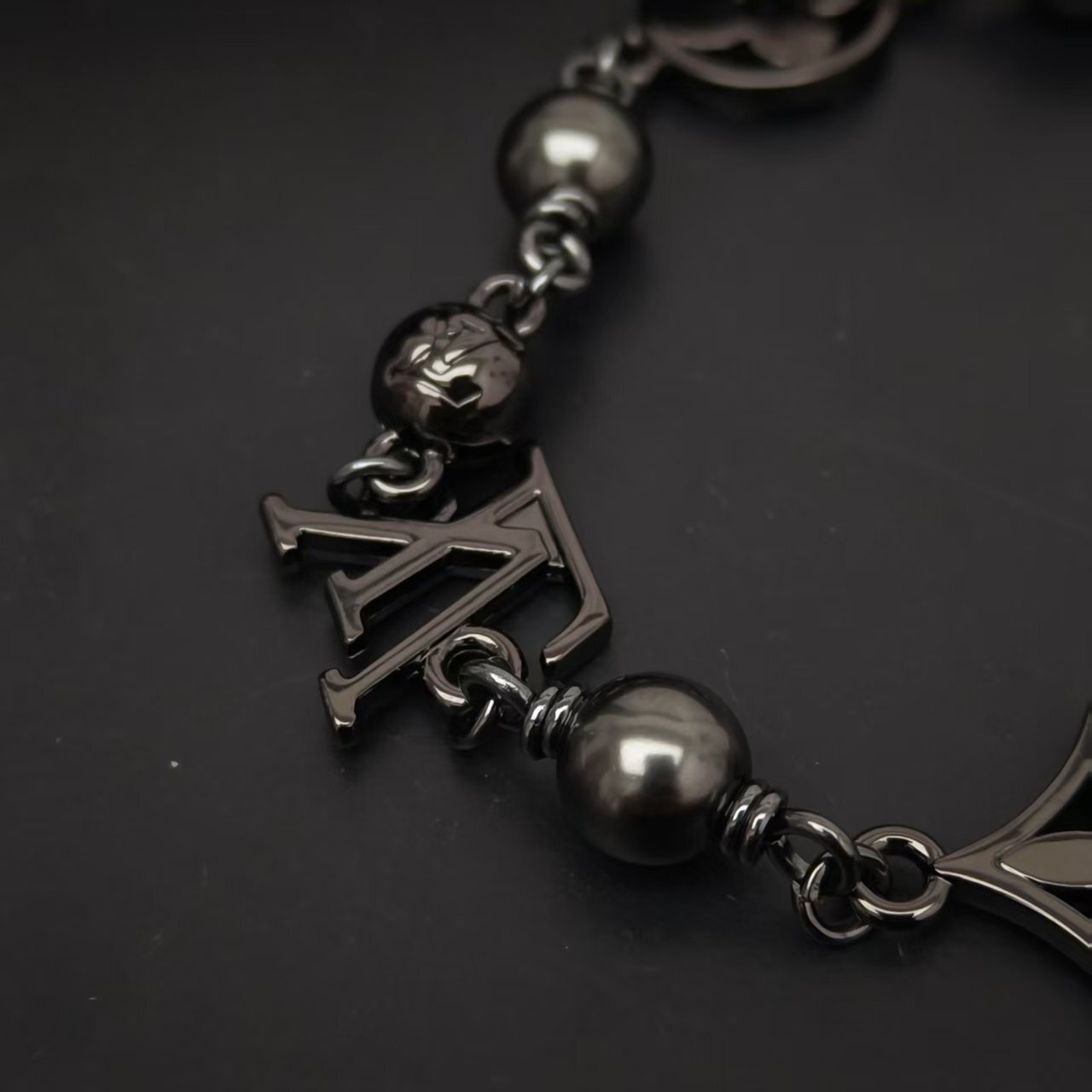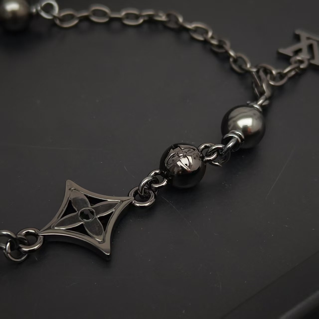Detailed Features of the LV Black Beaded Charm Necklace