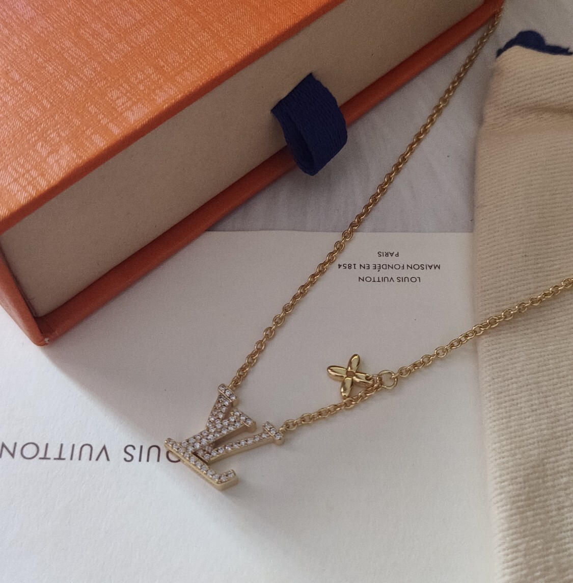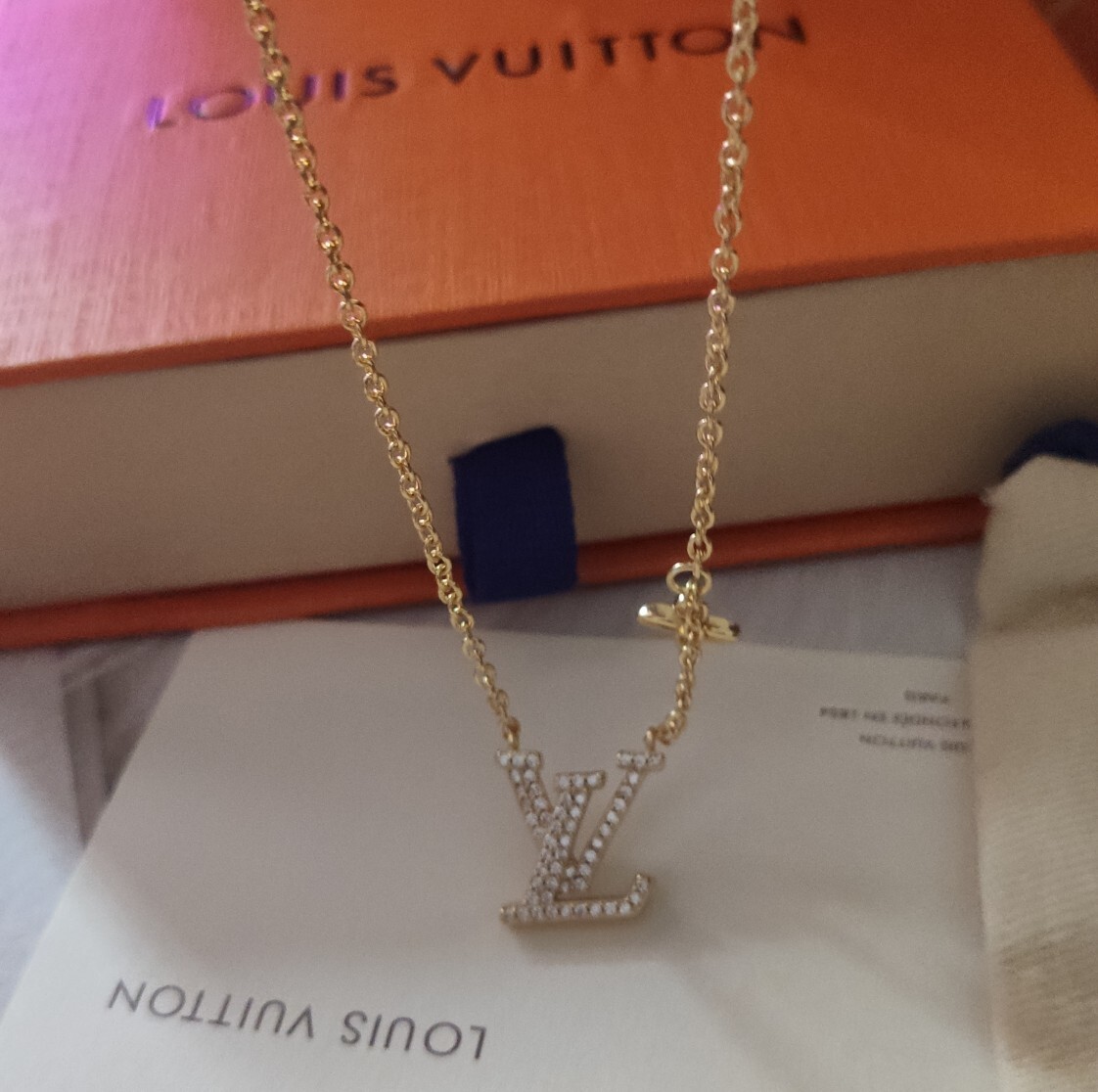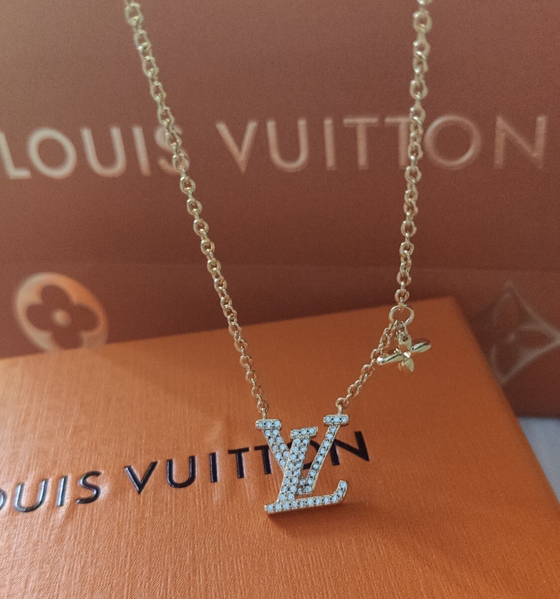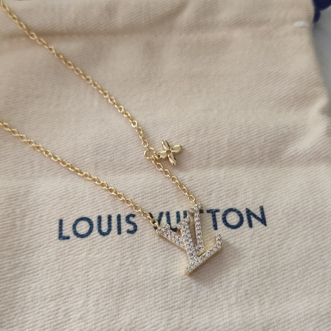 LV Gold Diamond Pendant - The Louis Vuitton Gold LV Diamond Necklace is the epitome of luxury and sophistication. This exquisite piece combines the iconic LV logo with sparkling diamonds, creating a dazzling pendant that will elevate any outfit. Crafted with meticulous attention to detail, this necklace showcases the unparalleled craftsmanship and timeless elegance that Louis Vuitton is renowned for. Whether you're dressing up for a special occasion or adding a touch of glamour to your everyday look, the Louis Vuitton Gold LV Diamond Necklace is the perfect accessory to make a statement.