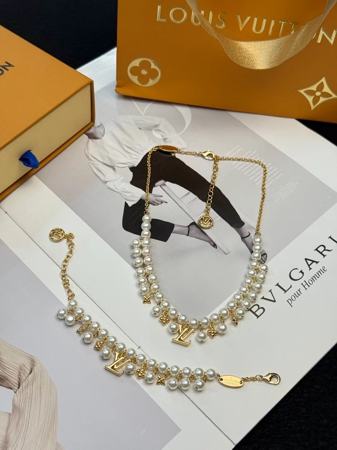 - Why Choose the LV Gold Pearl Necklace Bracelet Set?