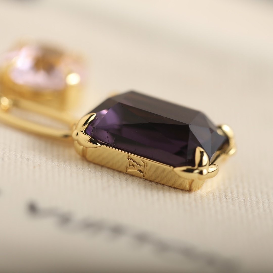 - LV Gold Tone Earrings Purple Crystal Overview