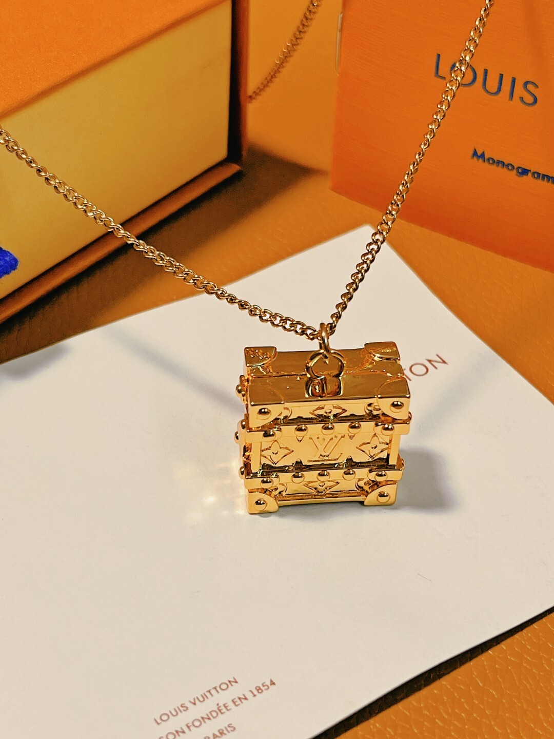 Here are some frequently asked questions about the LV Gold Trunk Pendant Necklace: