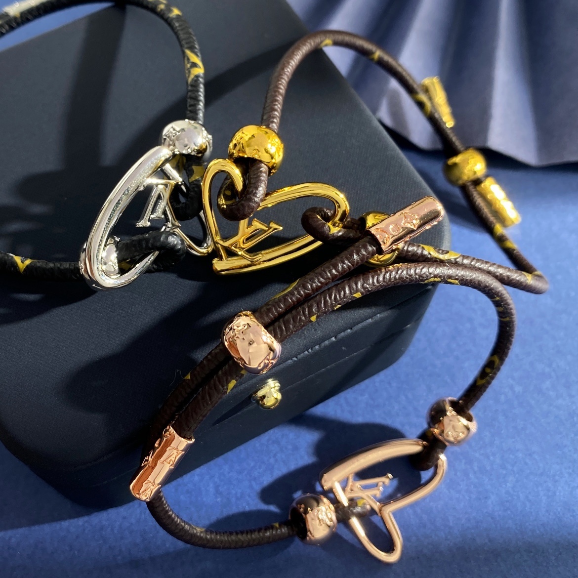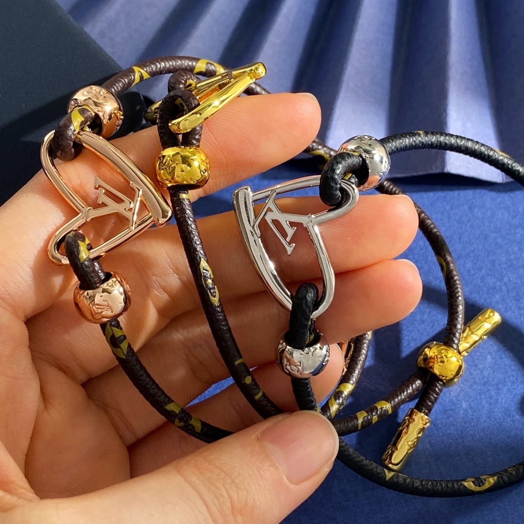 Our LV Heart Charm Bracelet features a delicate yet durable cord, adorned with a captivating LV heart charm. The charm is available in stunning gold, silver, and rose gold finishes, allowing you to choose the perfect complement to your personal style. The bracelet also features accent beads that enhance its overall aesthetic appeal.