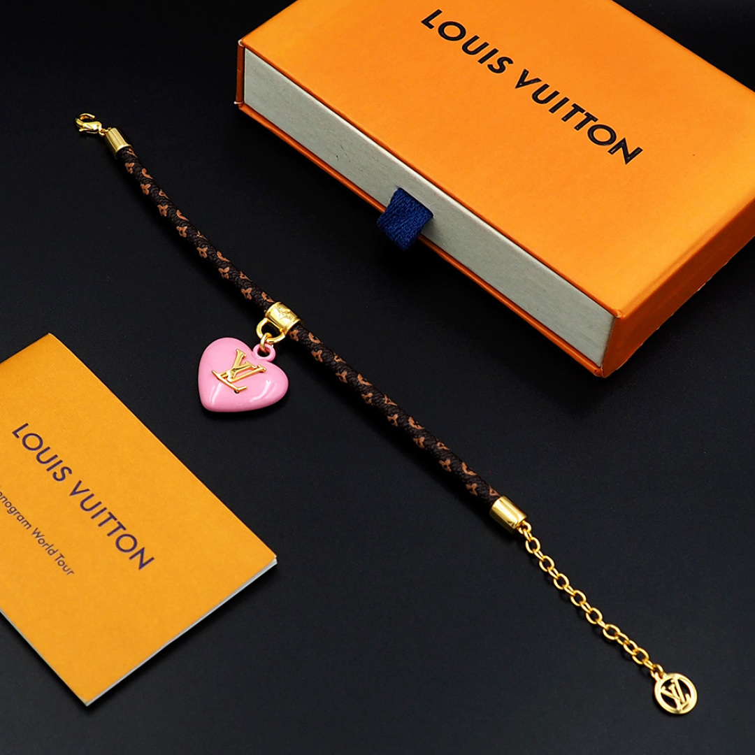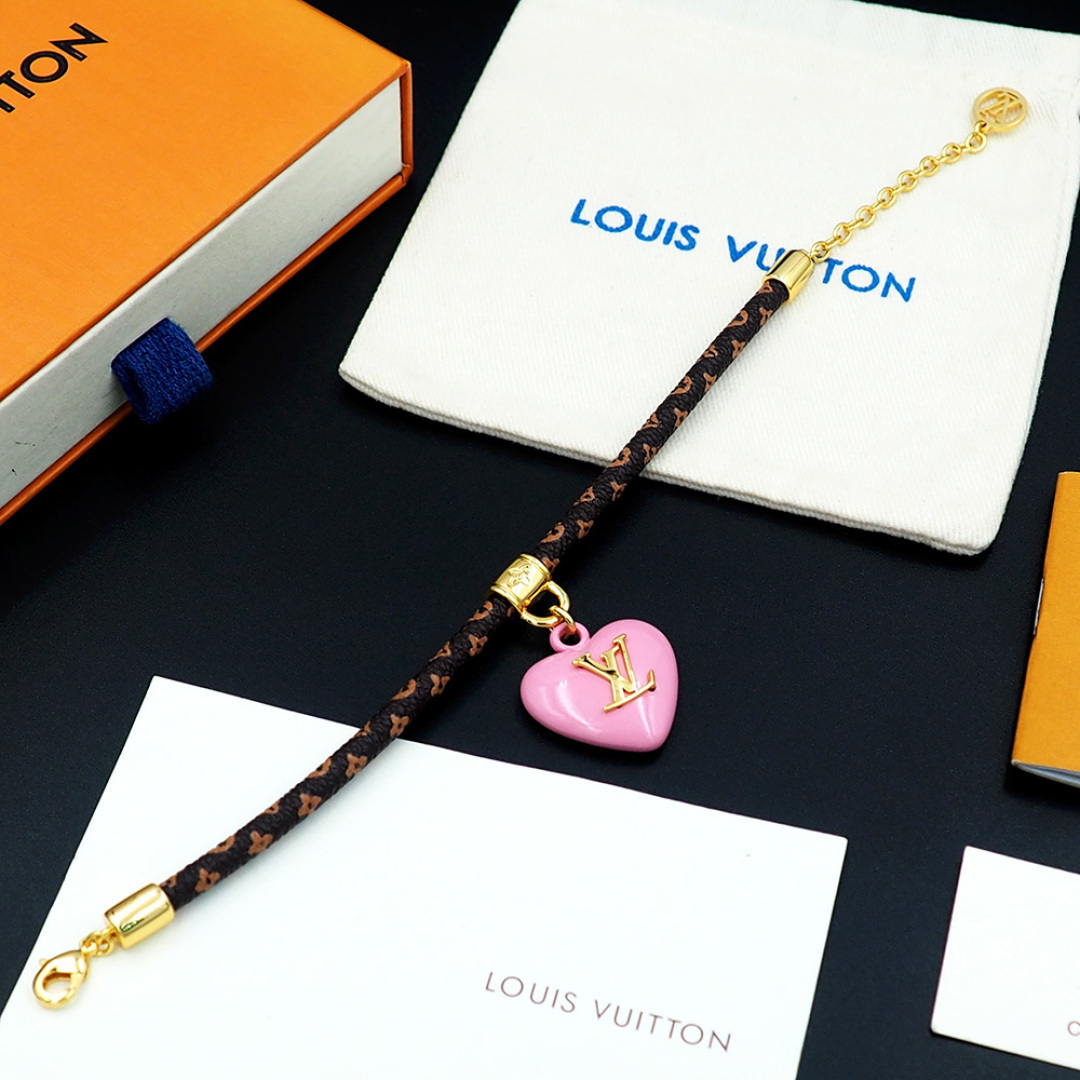 - Charming Design: Features a delightful pink heart charm adorned with the iconic LV logo, adding a playful and sophisticated touch to your wrist.