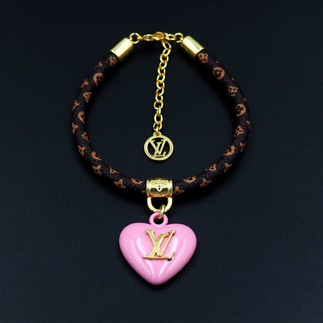 Indulge in the allure of luxury with our exquisite LV Heart Charm Bracelet. This stunning piece effortlessly combines classic design with a touch of modern flair, making it the perfect accessory to elevate any outfit. Crafted with meticulous attention to detail and using only the finest materials, this bracelet is a testament to enduring style and impeccable craftsmanship.