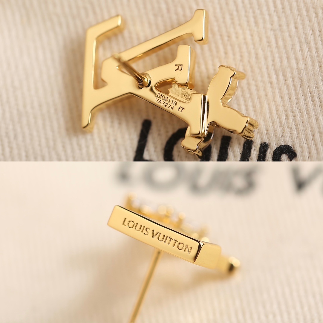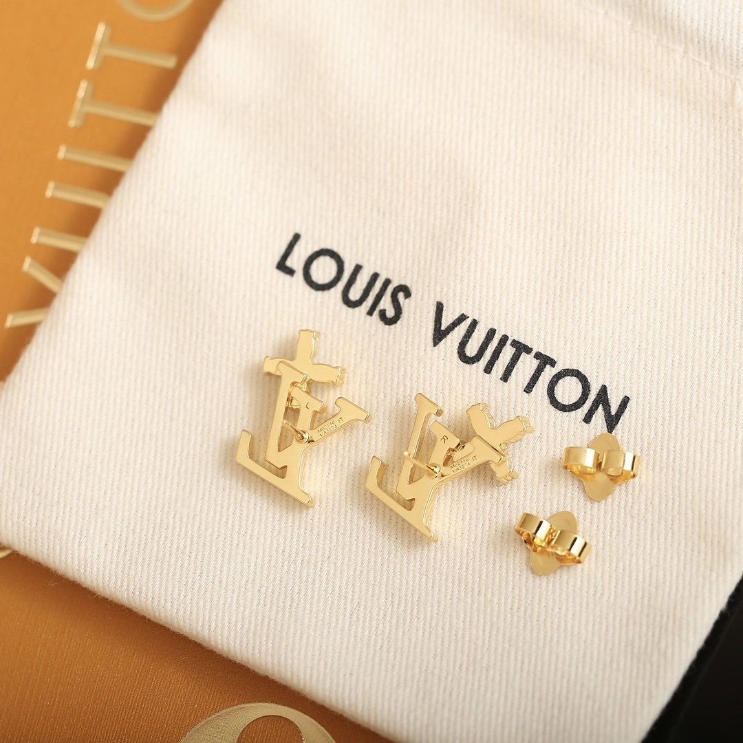 Louis Vuitton Gold LV Initial Earrings – Statement Studs
