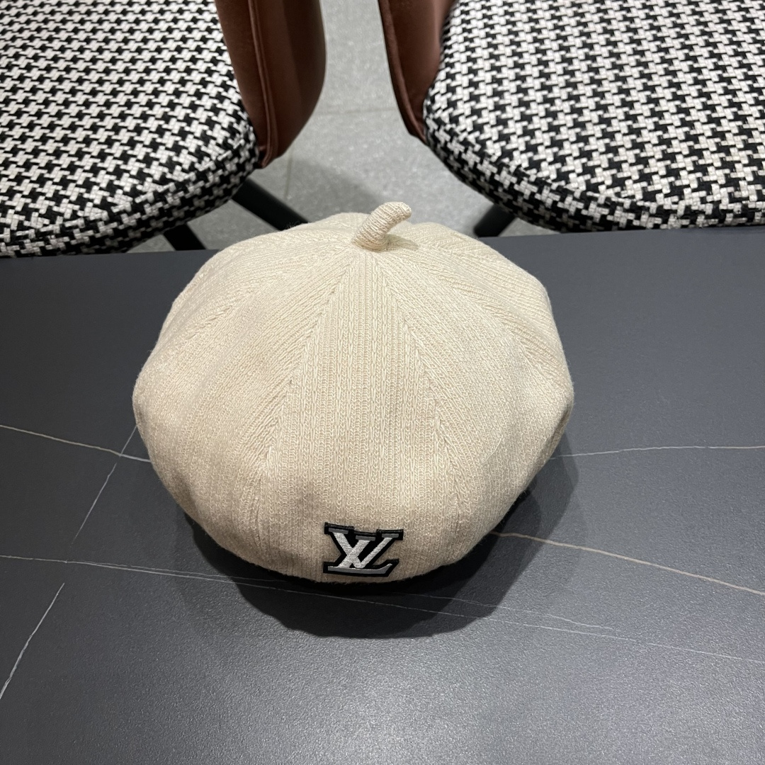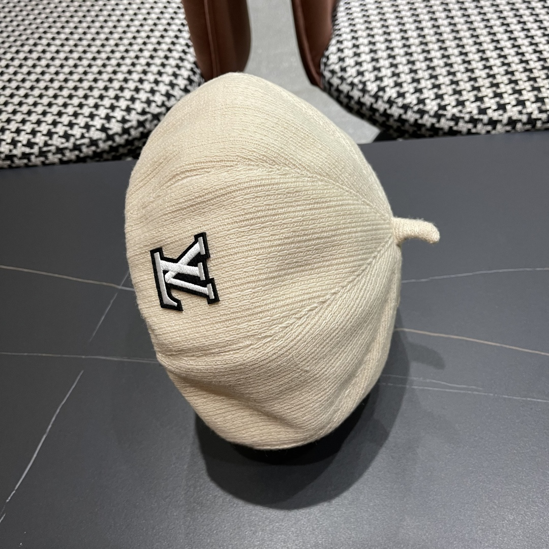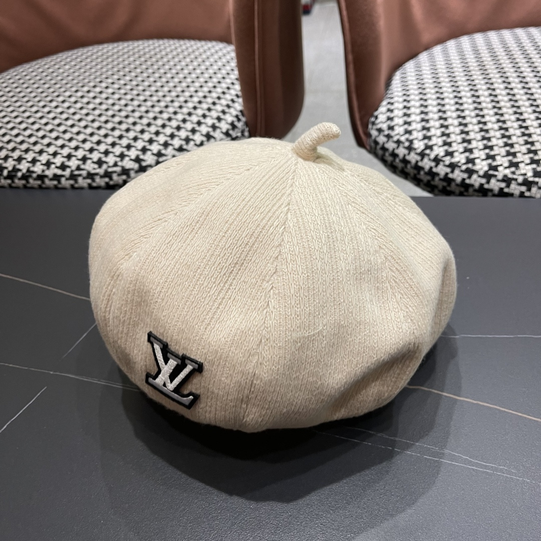 - Introducing the Louis Vuitton Beige Knit Beret with LV Logo