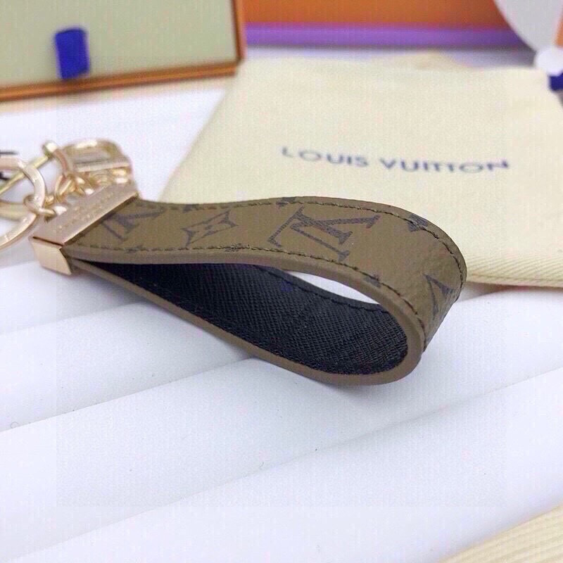The keychain's iconic LV monogram pattern is instantly recognizable, adding a touch of sophistication and elegance to your keys, bags, or other accessories. Its versatile design allows it to be used in various ways, making it a perfect addition to any wardrobe.